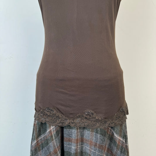 Brown Lace Trim Tank Top