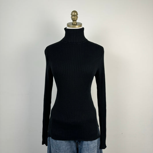 Silk Cotton Blend Fitted Turtleneck Sweater