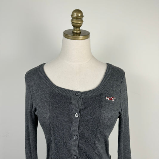 Dark Grey Lace Floral Button Up Cardigan