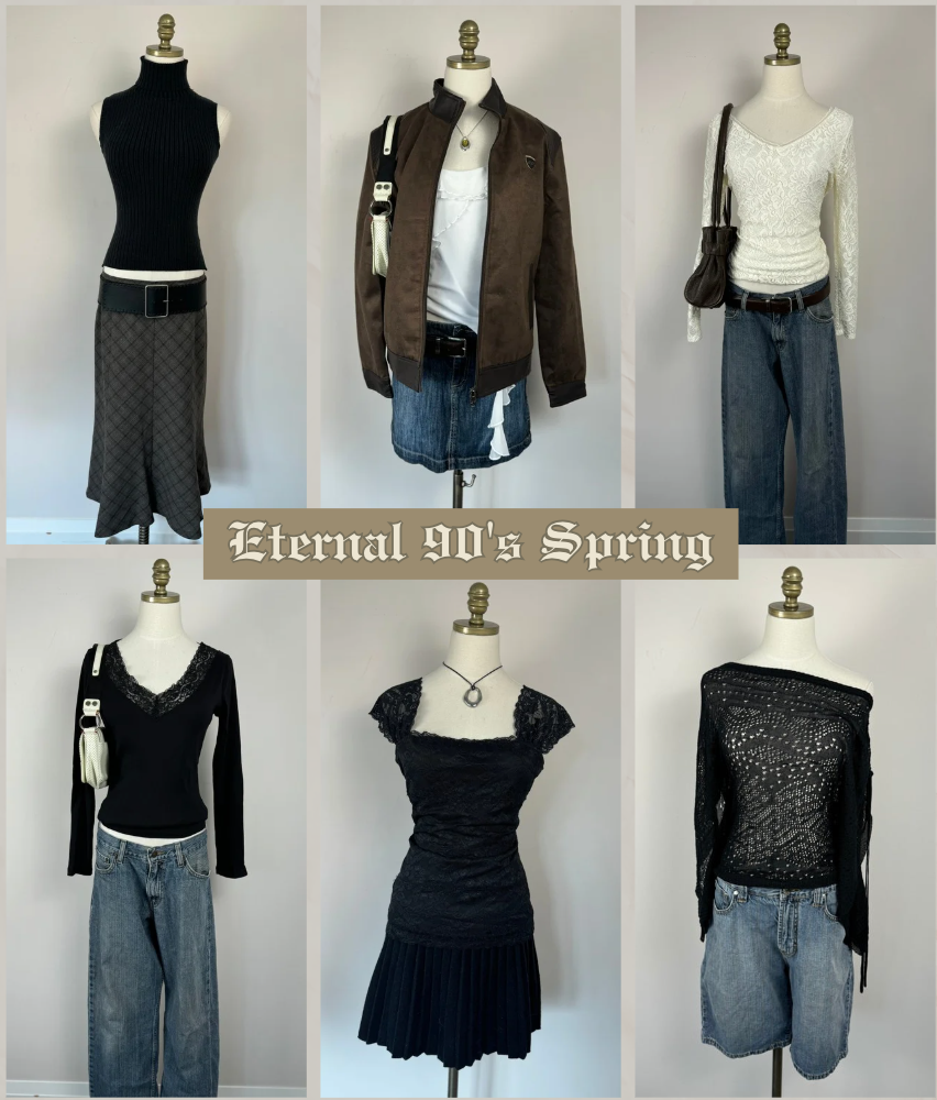 A curation of S/S 2025 fashion trends with a vintage 90s and...