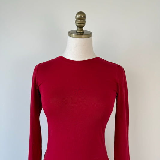 Fitted High Neck Ribbed Knit Long Sleeve Top