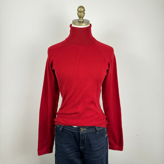 Dark Red Fitted Turtleneck Sweater