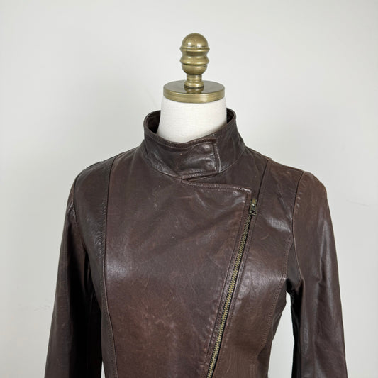 Brown Asymmetric Fitted Moto Genuine Leather Jacket