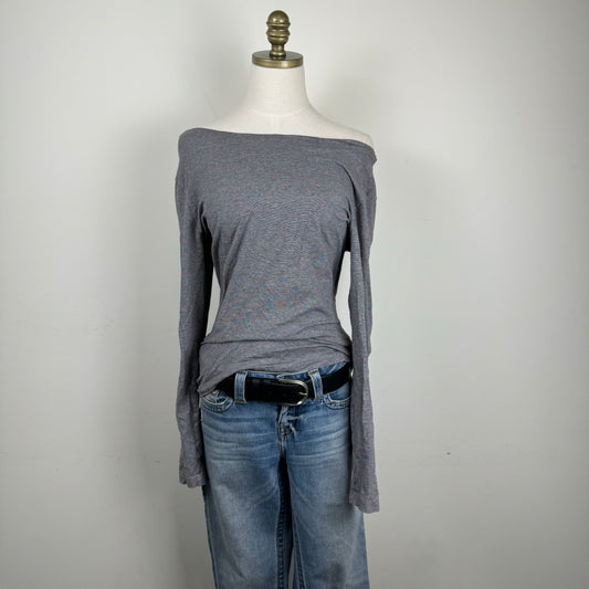 Grey Off Shoulder Long Sleeve Top