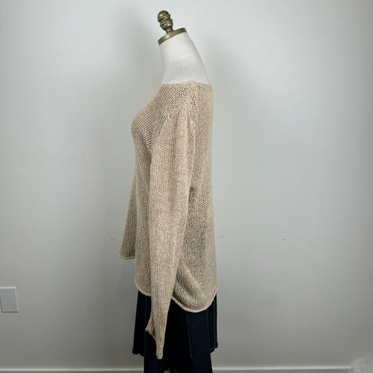 Beige Off Shoulder Loose Knit Crochet Sweater