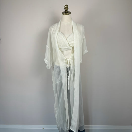 Vintage Cream Lace Sheer Slip Dress and Cover-Up