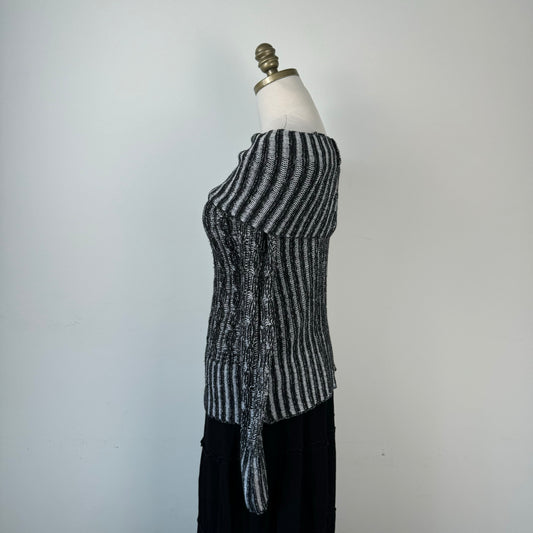 Fitted High Neck Ribbed Knit Long Sleeve Top