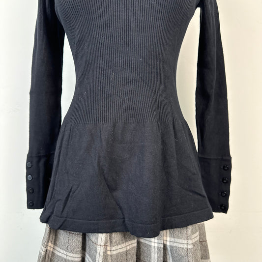 Vintage Black Fitted Turtleneck Sweater with Flared Hem