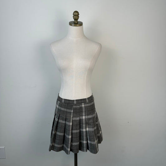 Grey Plaid Pleated Mini Skirt