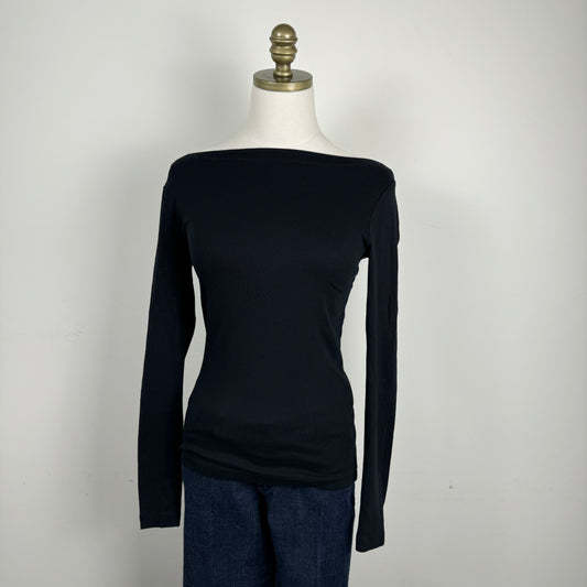 Black Boat Neck Long Sleeve Top