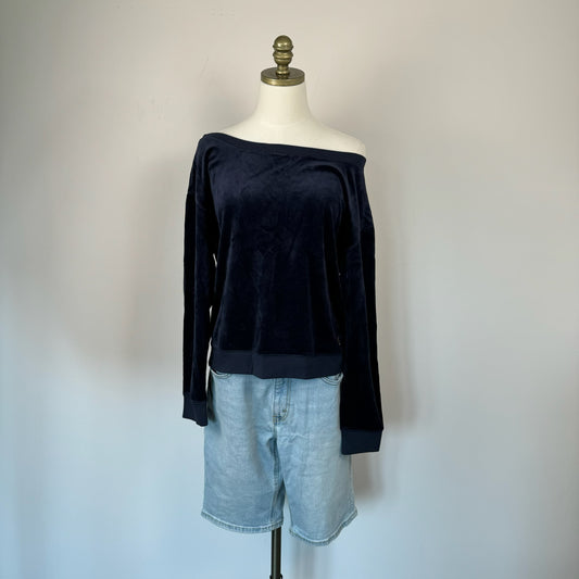 Juicy Couture Navy Off Shoulder Velour Sweater
