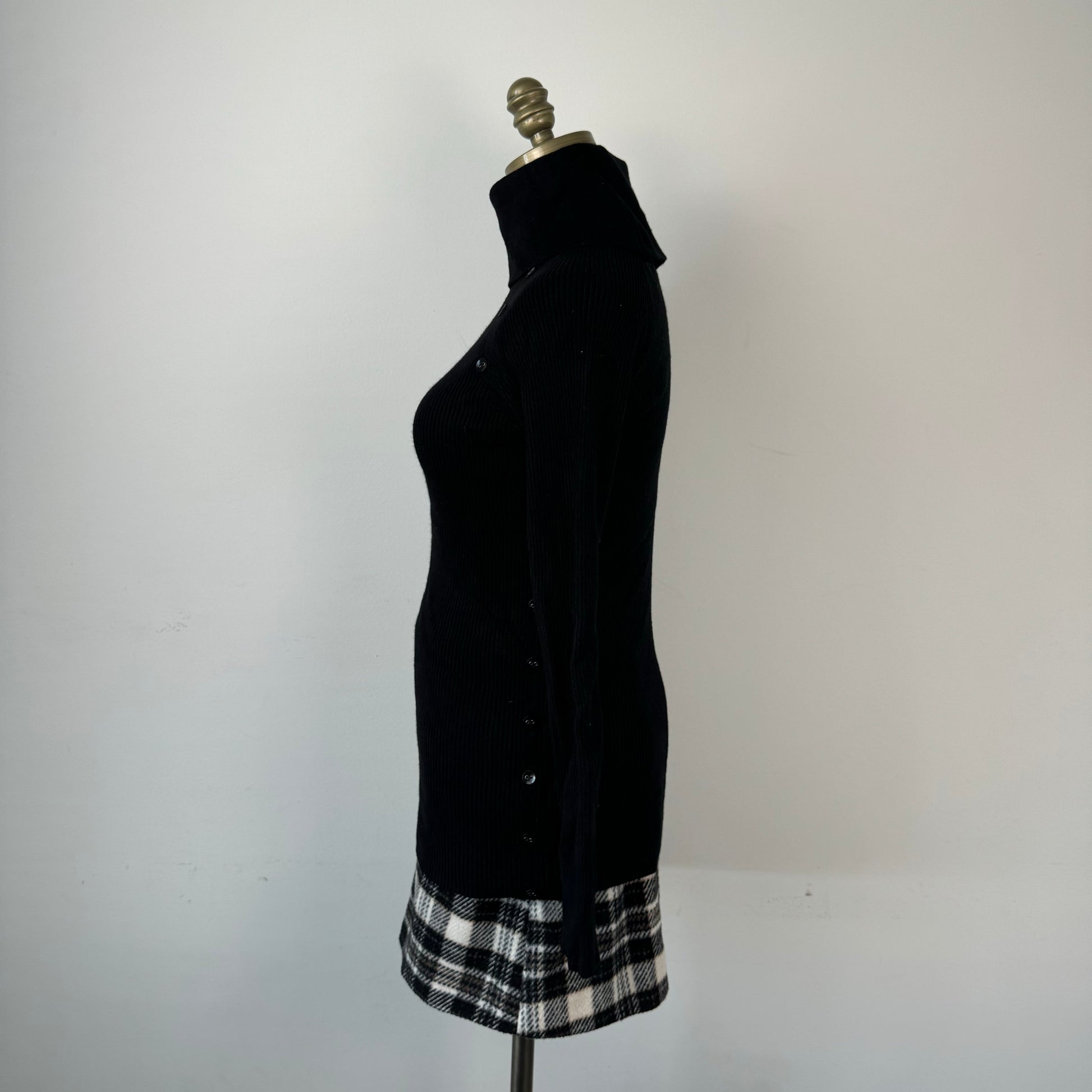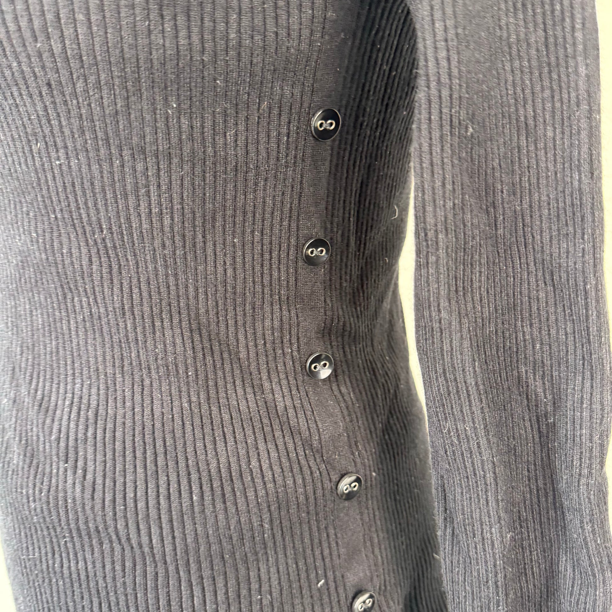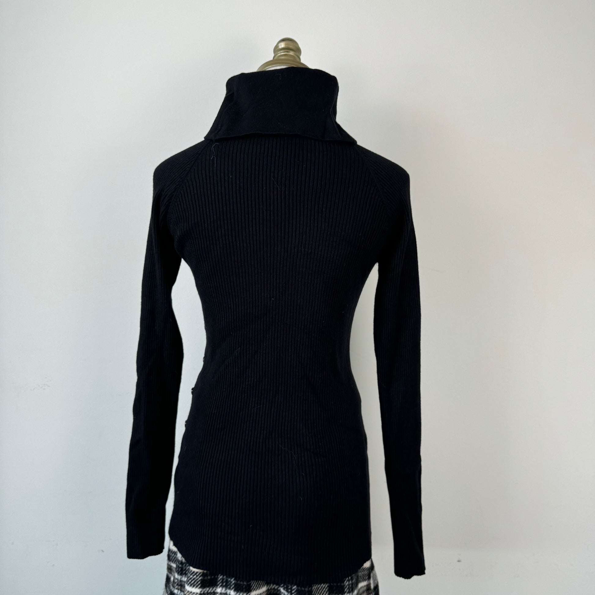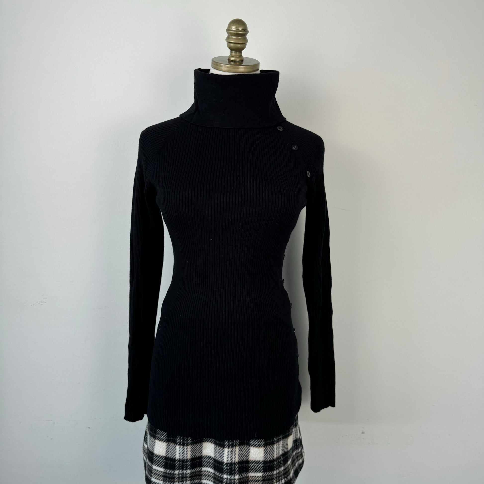 Details: Black fitted long sleeve turtleneck sweater with button details.