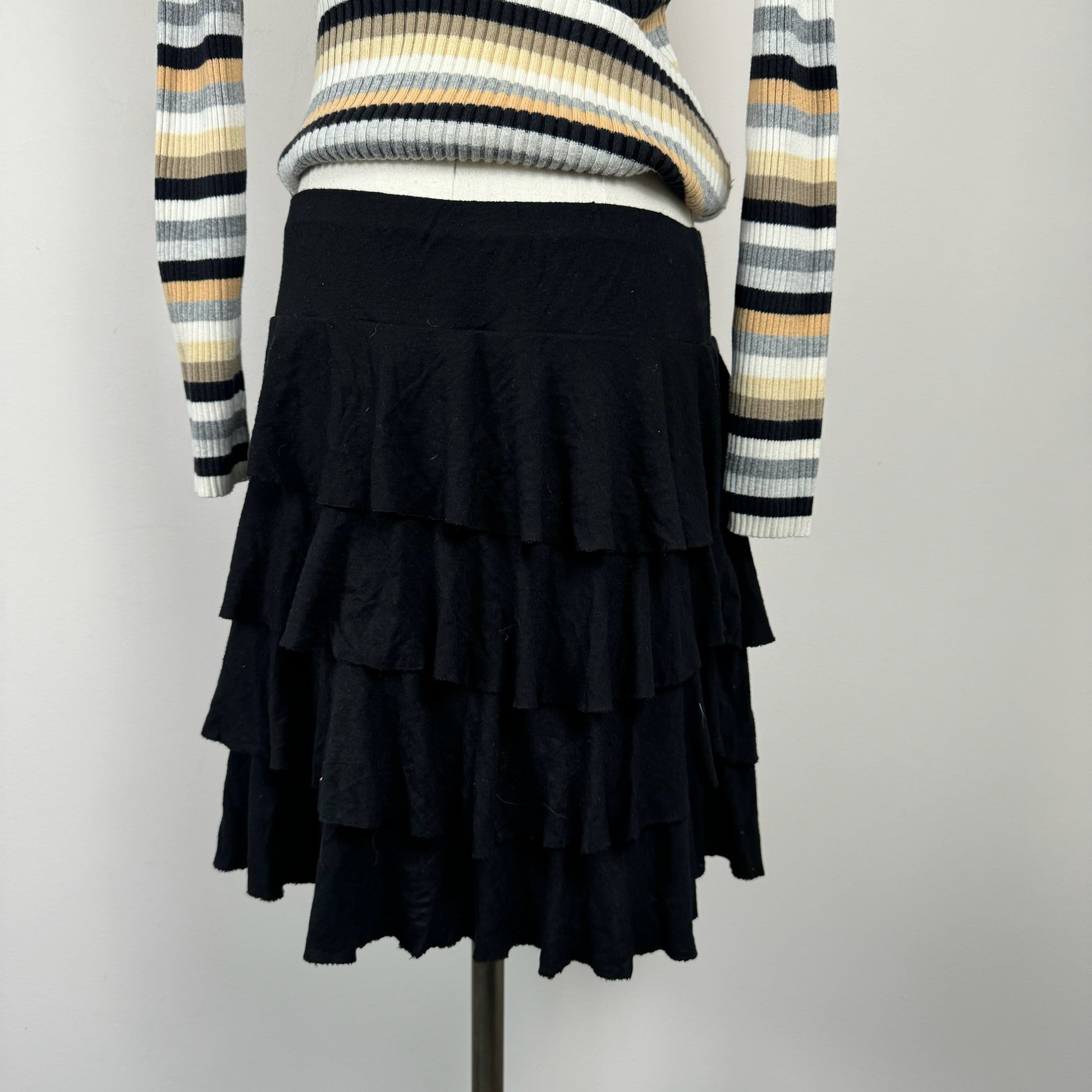Details: Black layered ballerina midi skirt with a chic design perfect for any occasion.