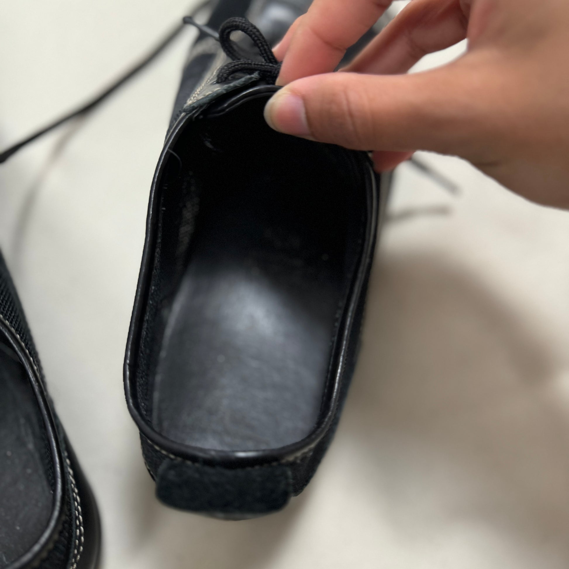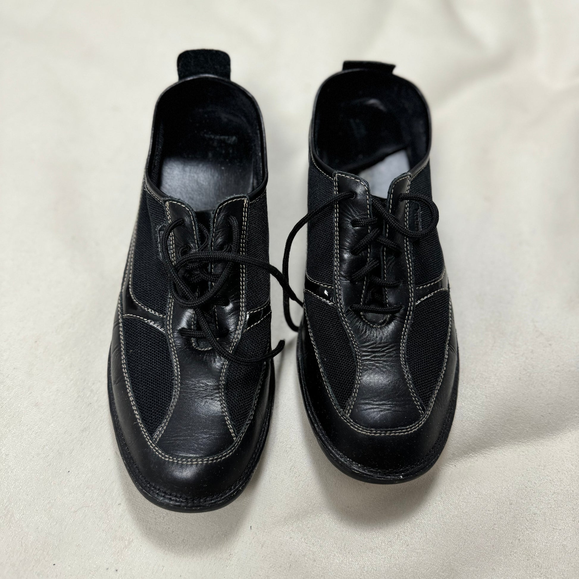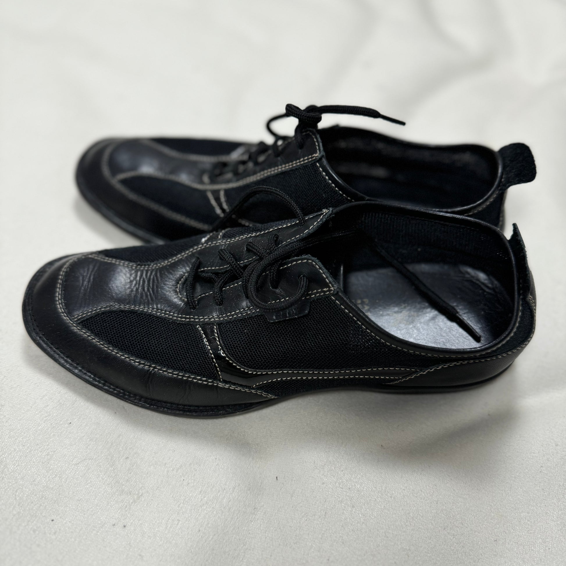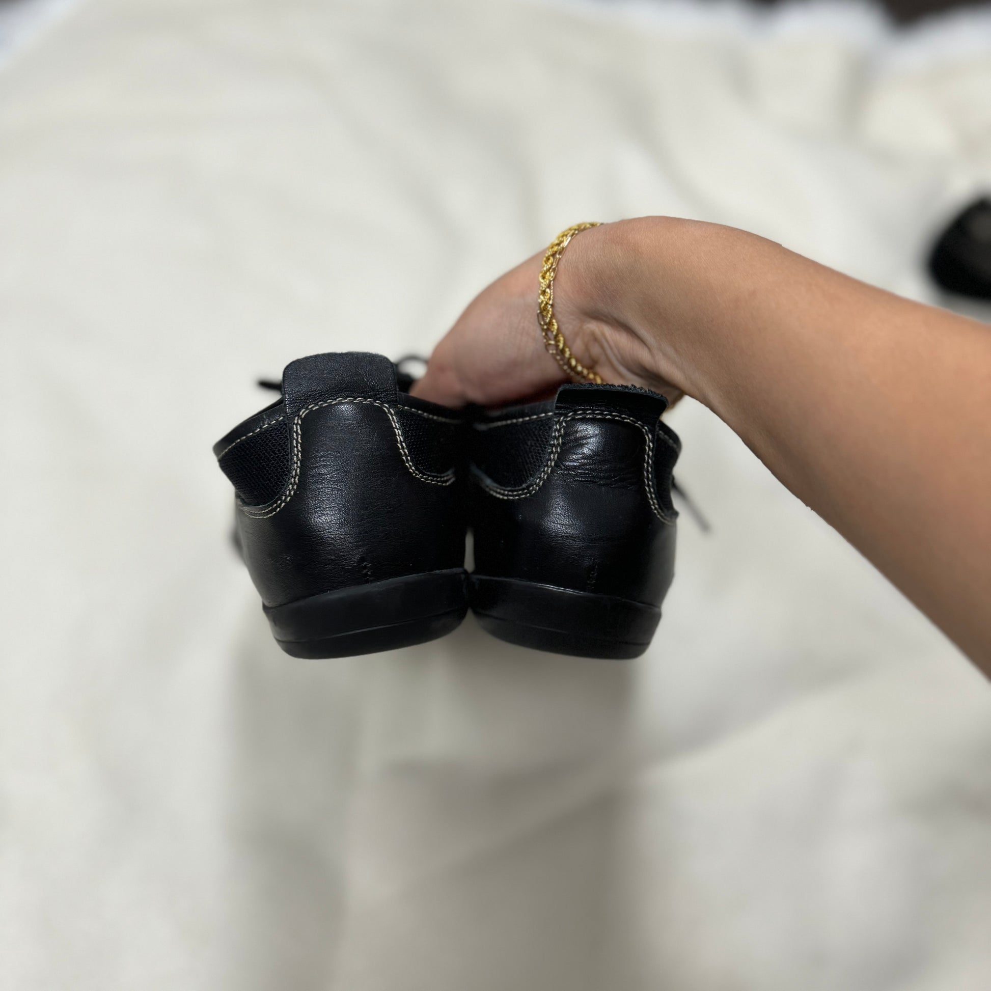Details: Black skinny sneakers made of leather and mesh, super comfy.