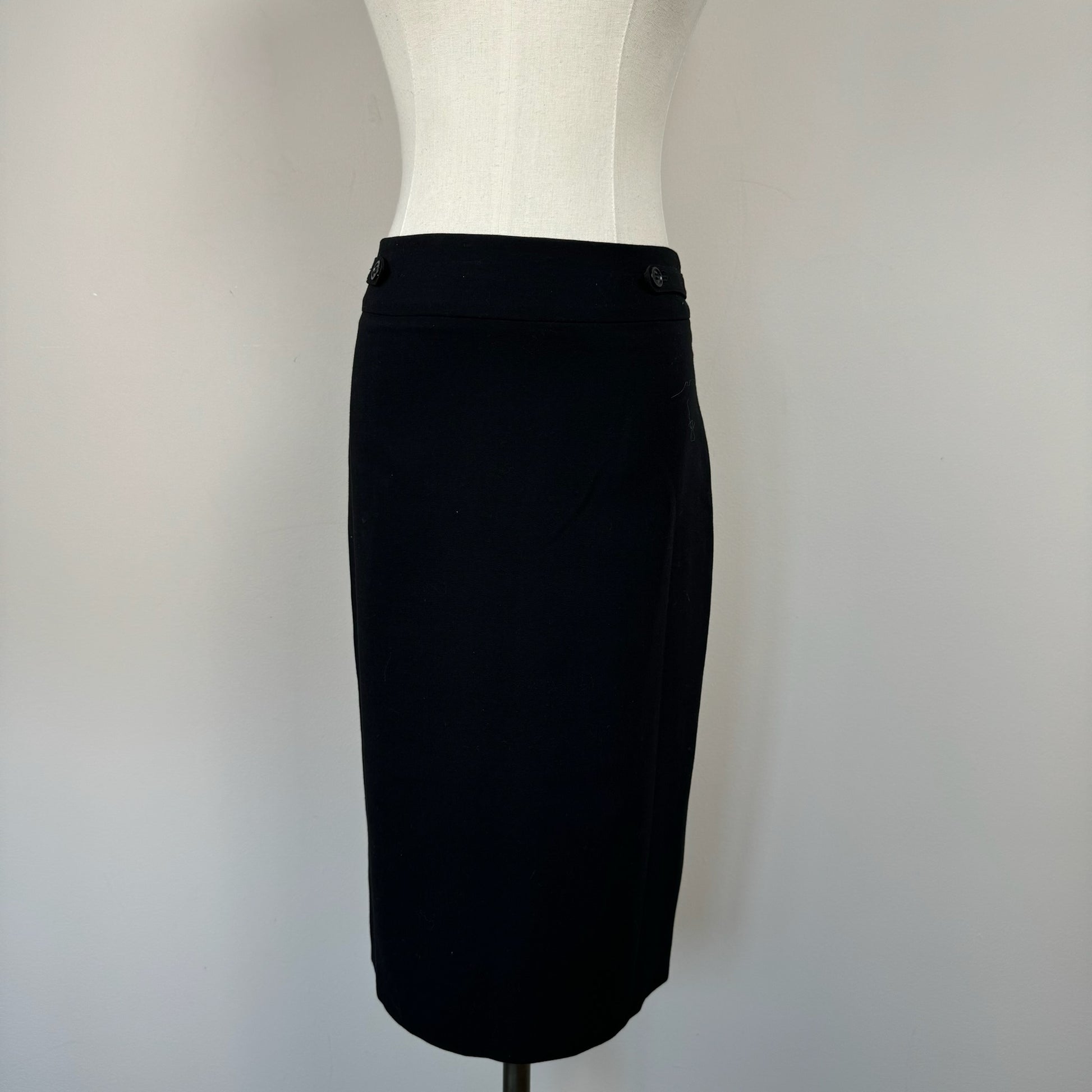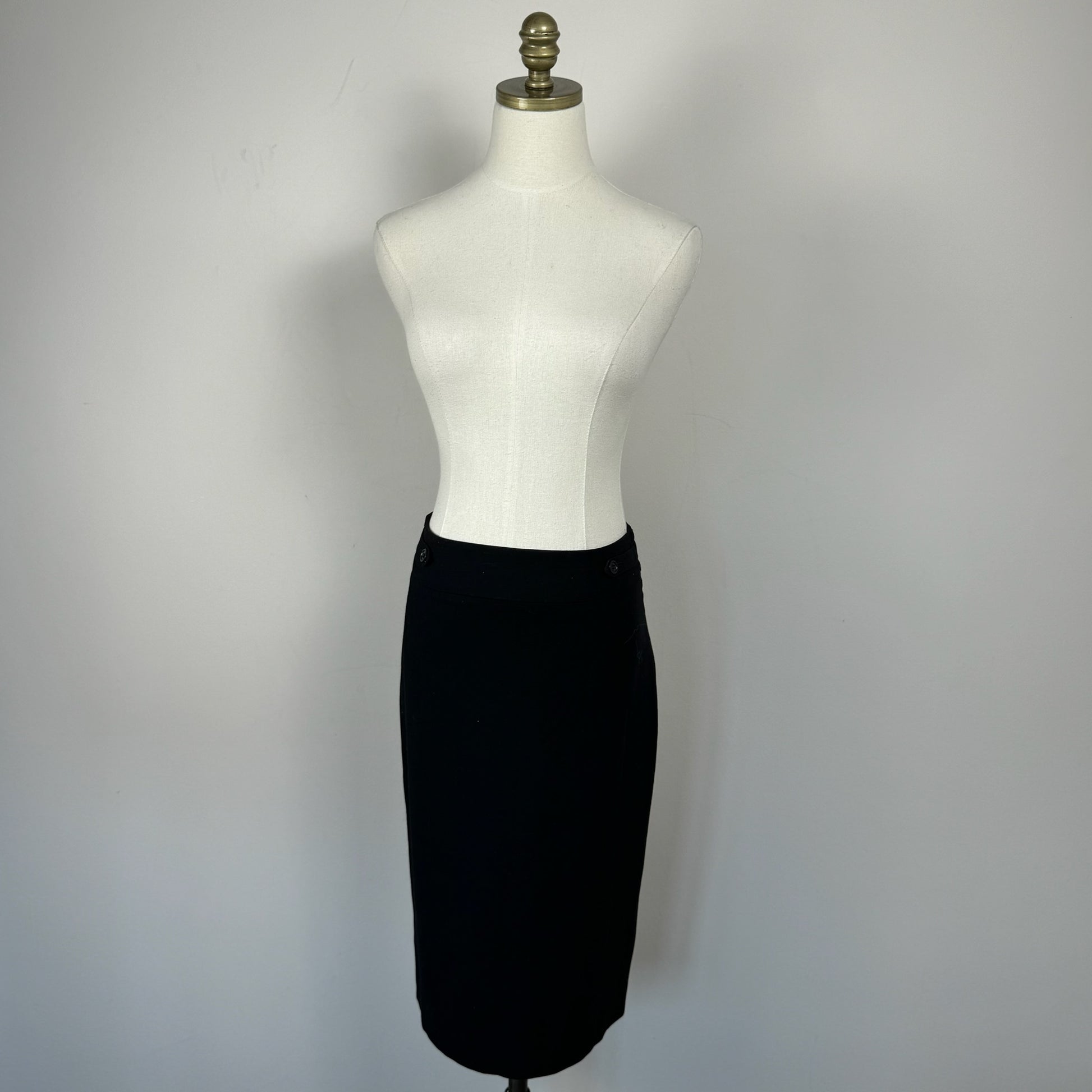 Details: Vintage black pencil midi skirt with a sleek silhouette.
