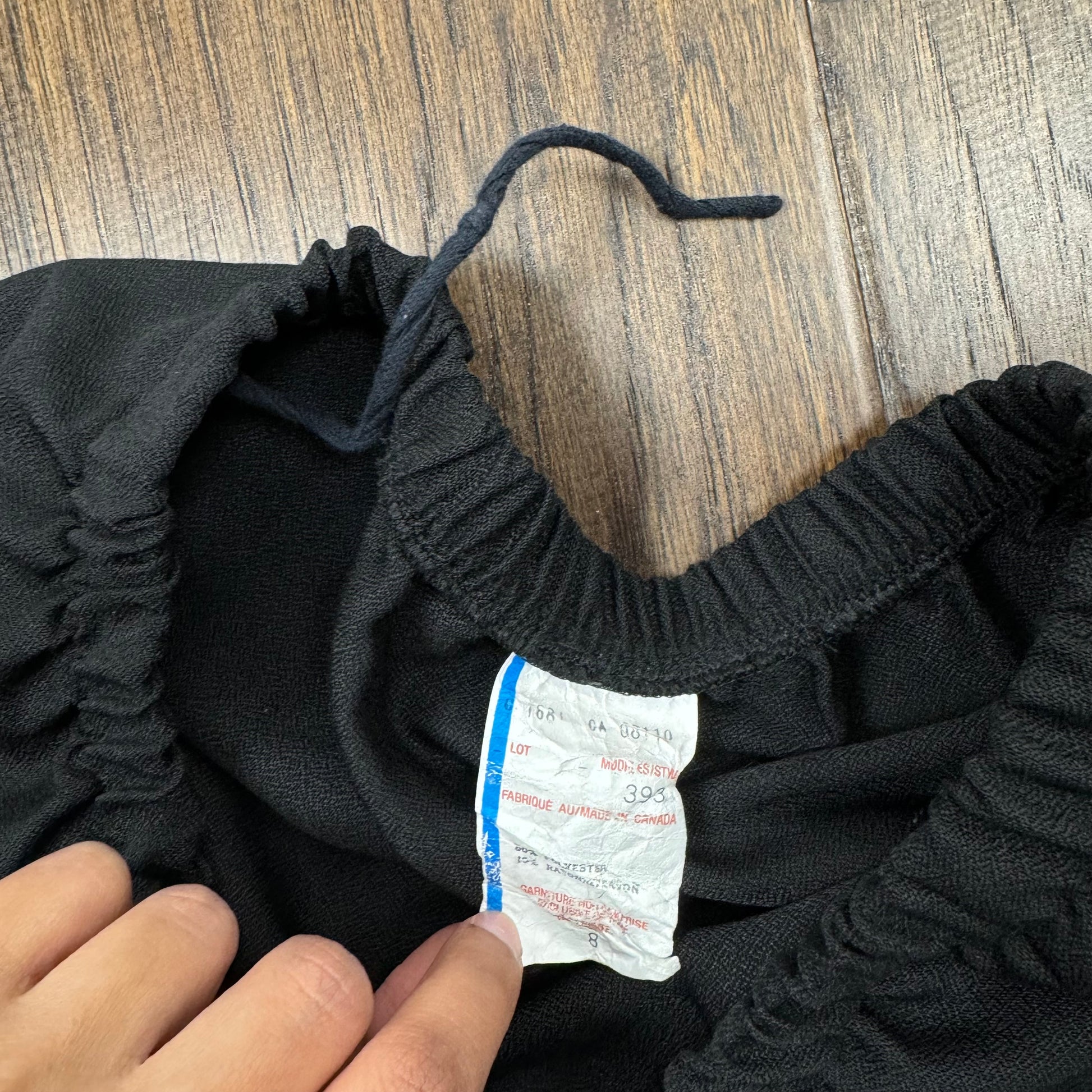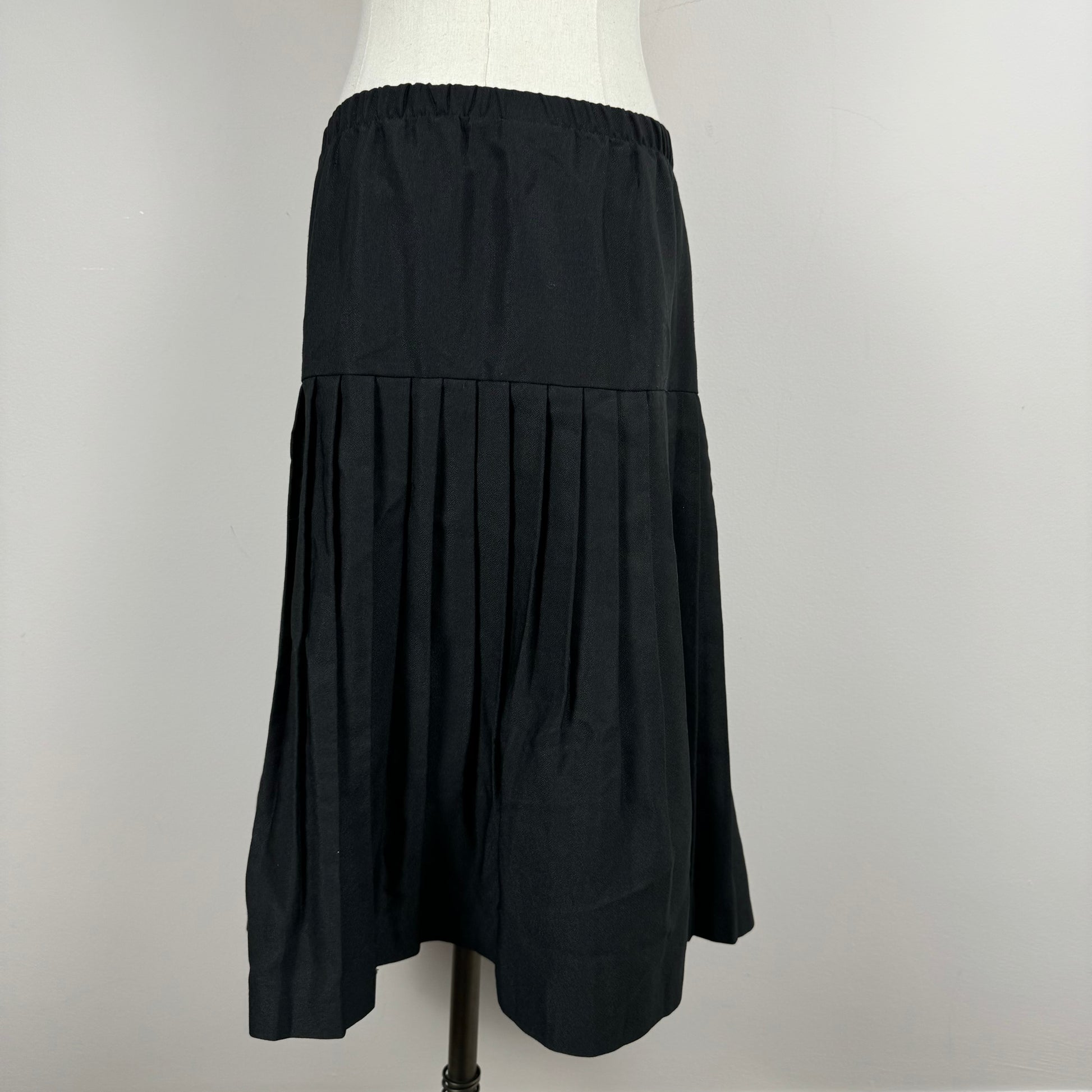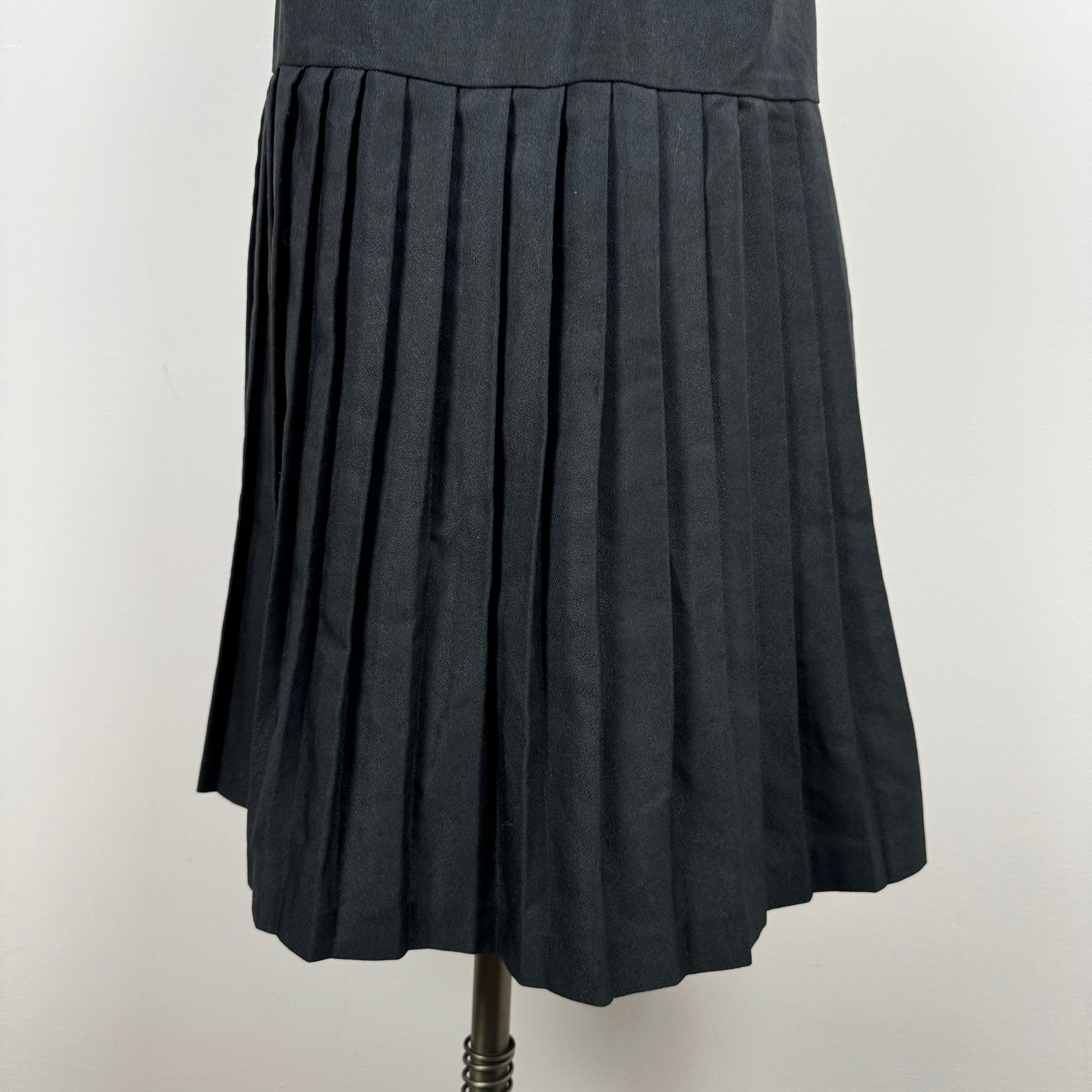 Details: Vintage black pleated midi skirt with a drop waist design.