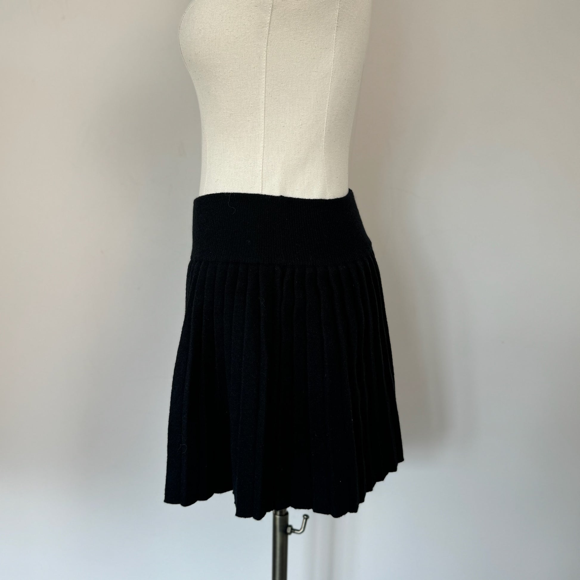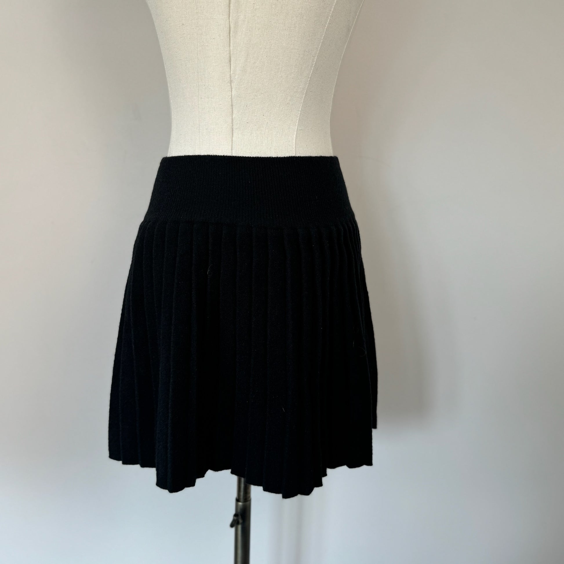 Details: Chic black pleated mini skirt in a thick knit fabric with a wide waistband.