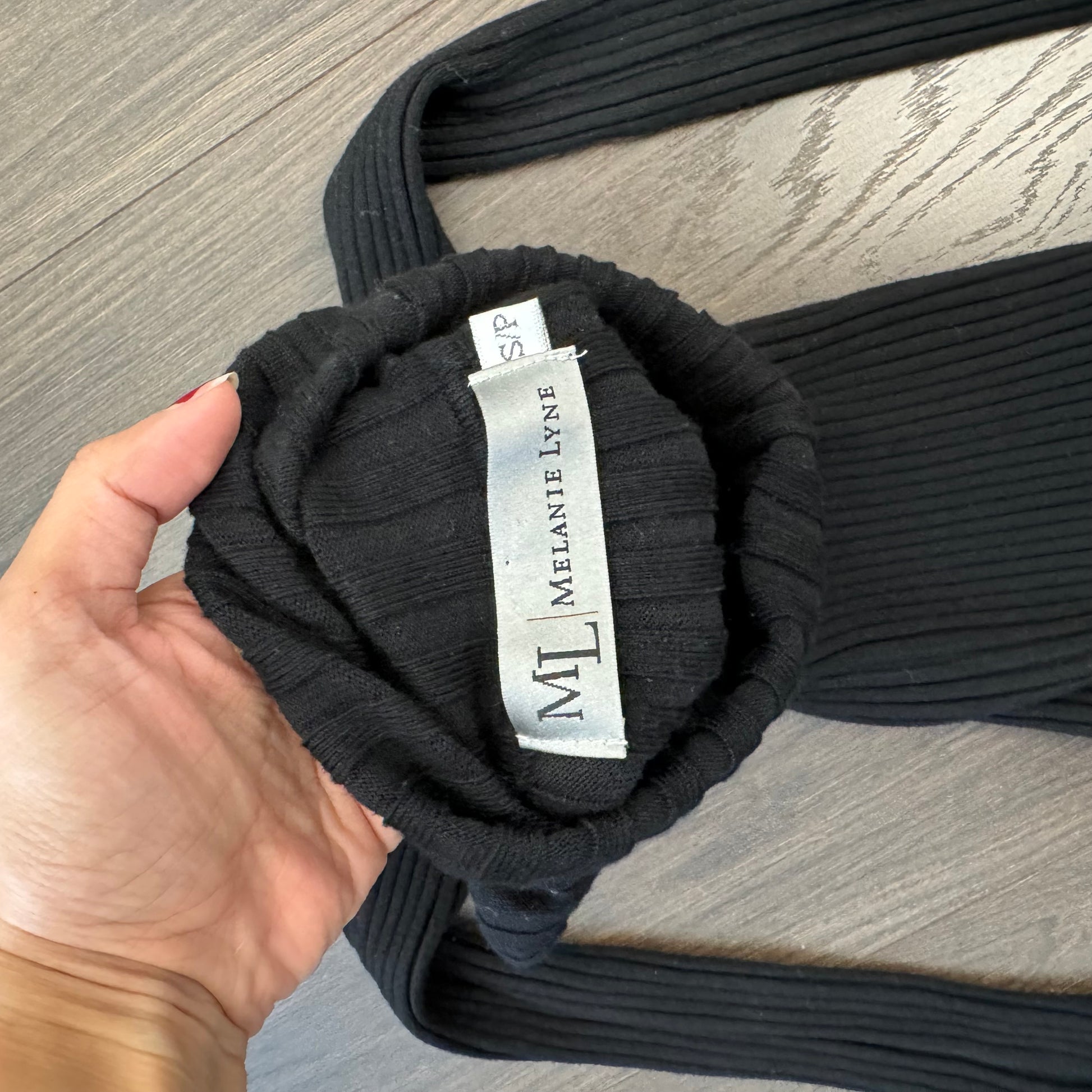 Black Ribbed Knit Fitted Turtleneck Sweater