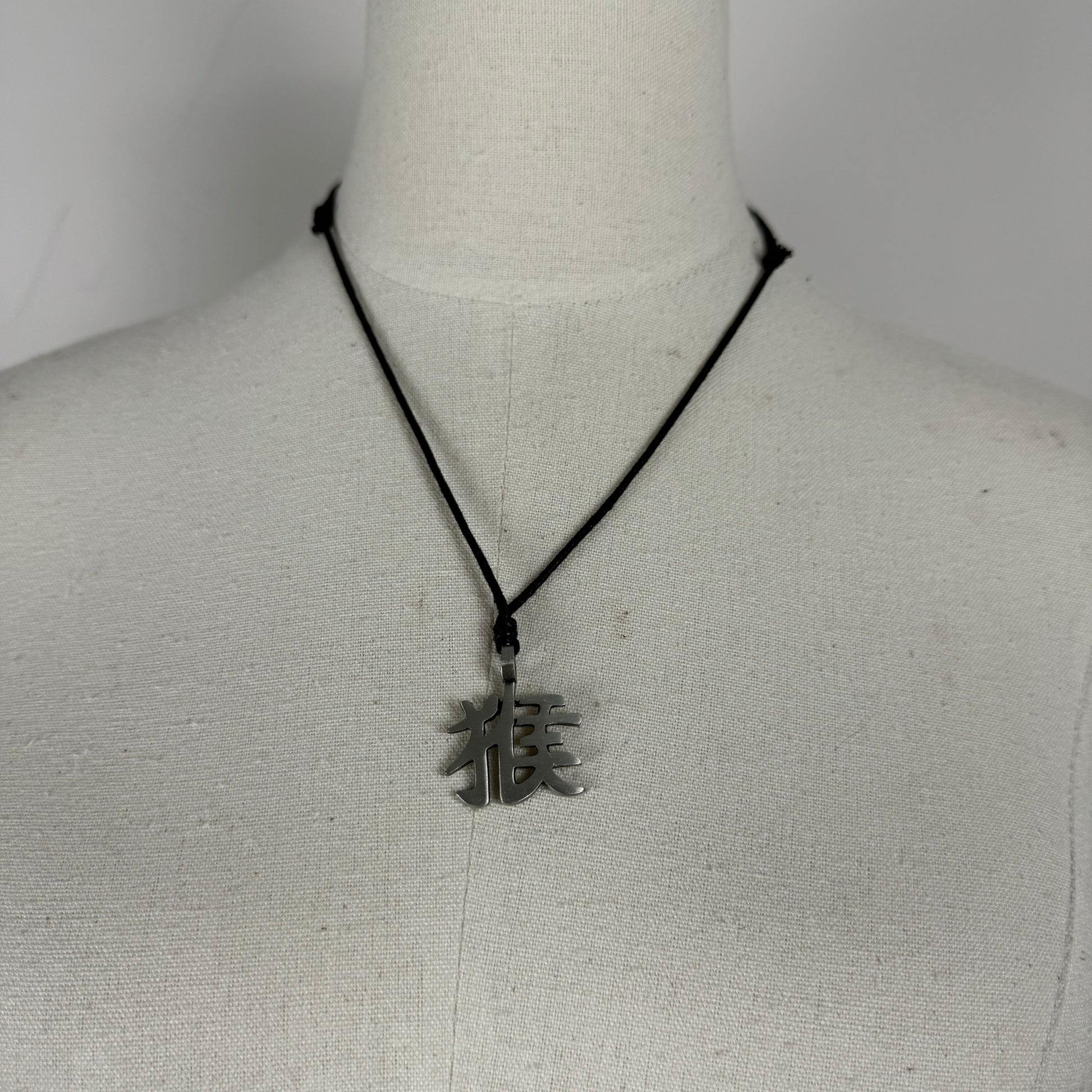 Details: Black rope necklace with an adjustable fit, featuring a Chinese letter dragon pendant for a bold, vintage-inspired touch.