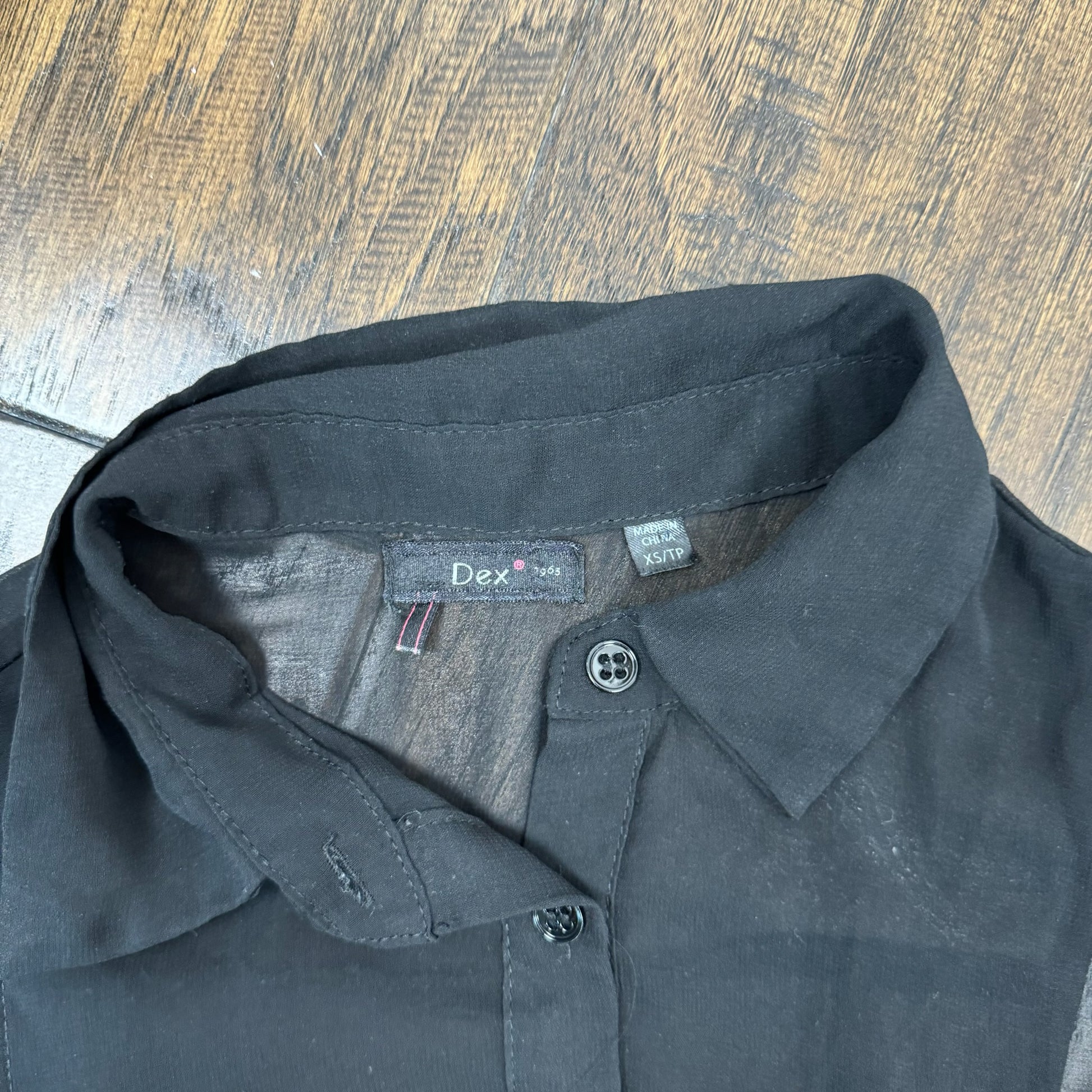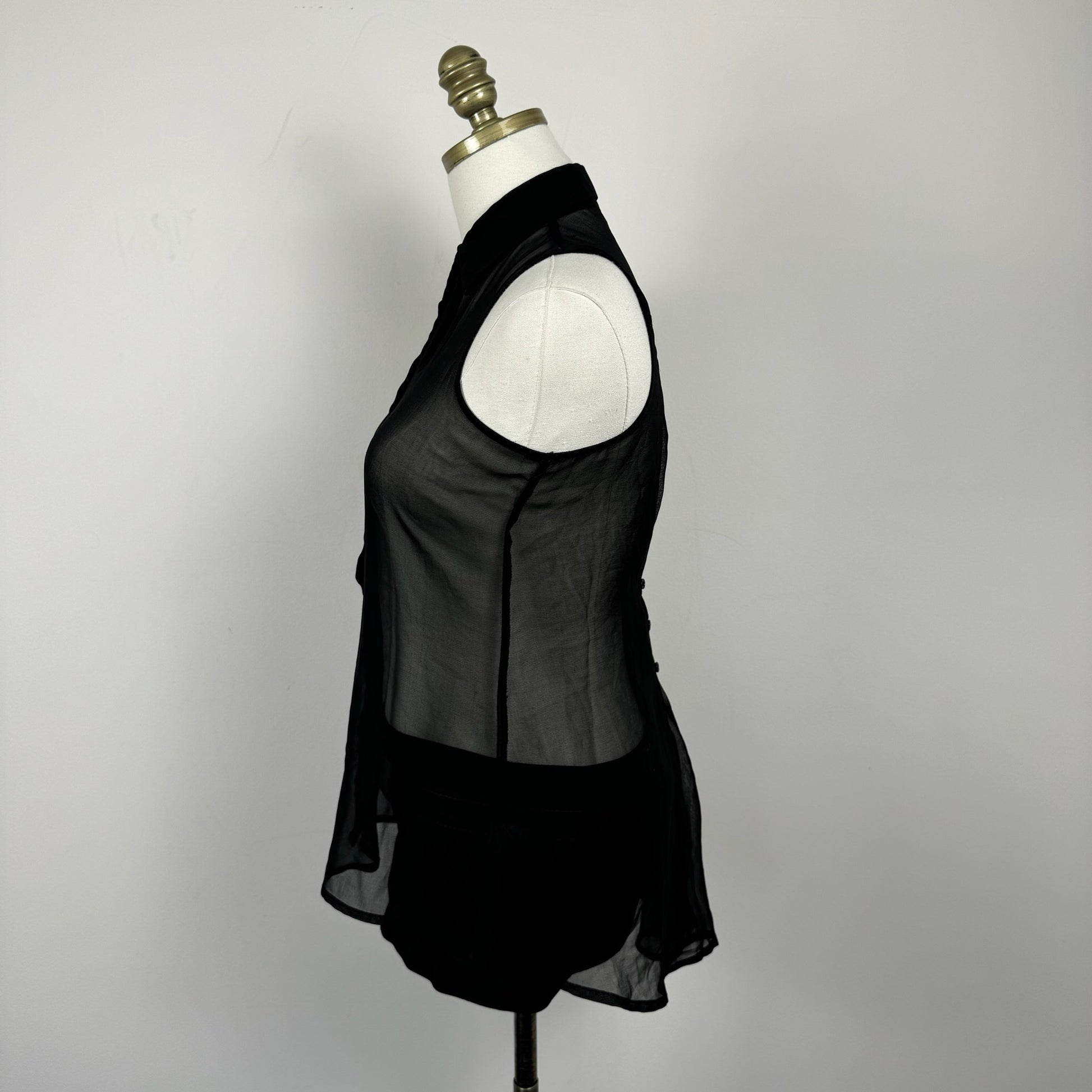 Black Sheer High Neck Sleeveless Button Up Shirt