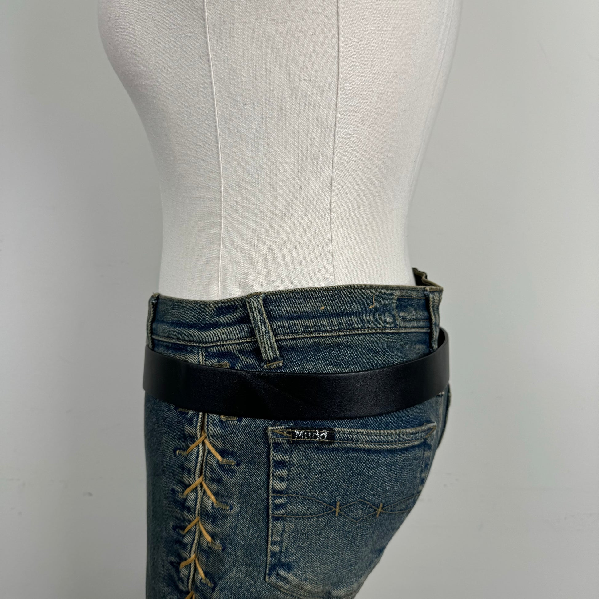 Black leather belt with cowboy western style silver buckle. From Urban Outfitters. Waist 30-32", Width 1.2"