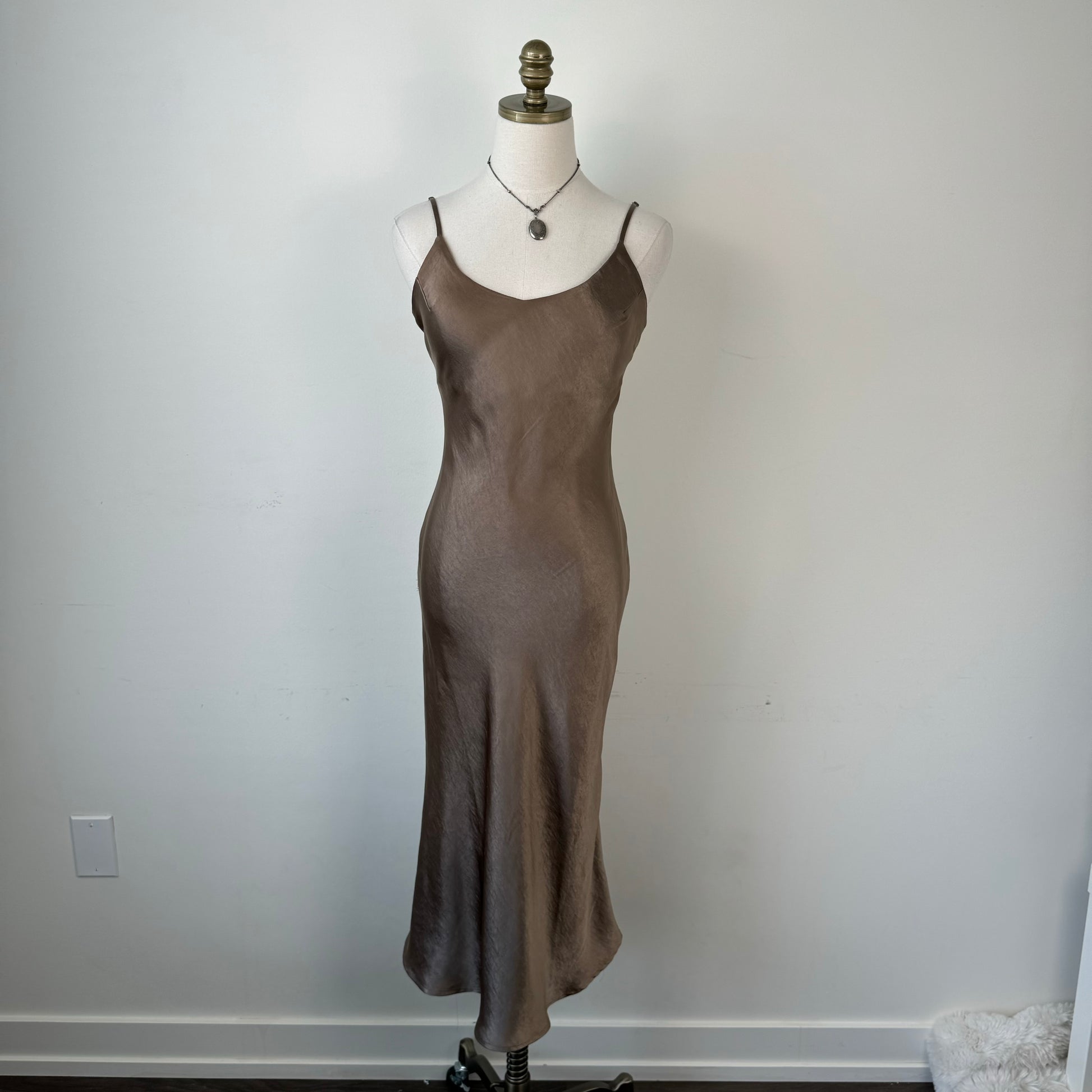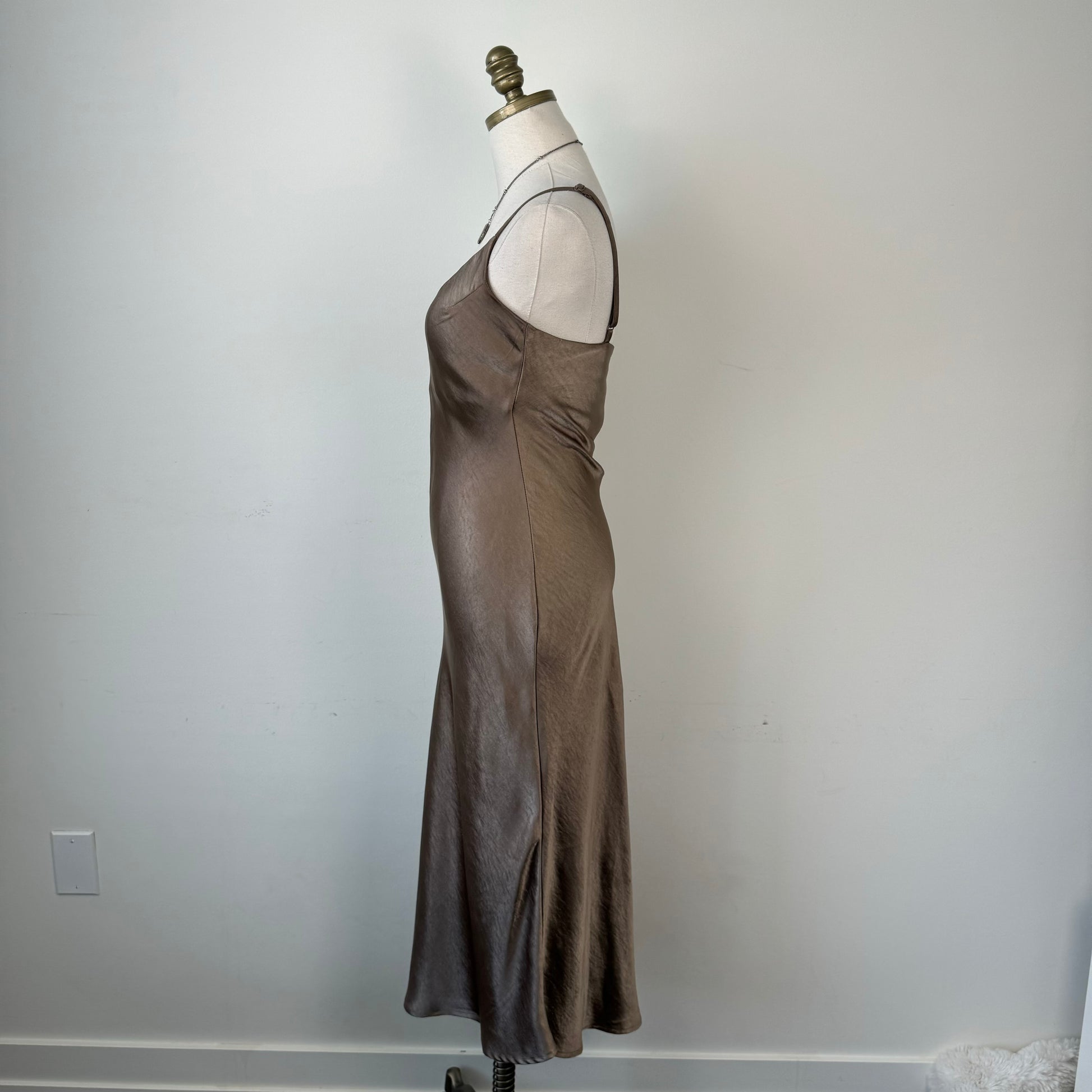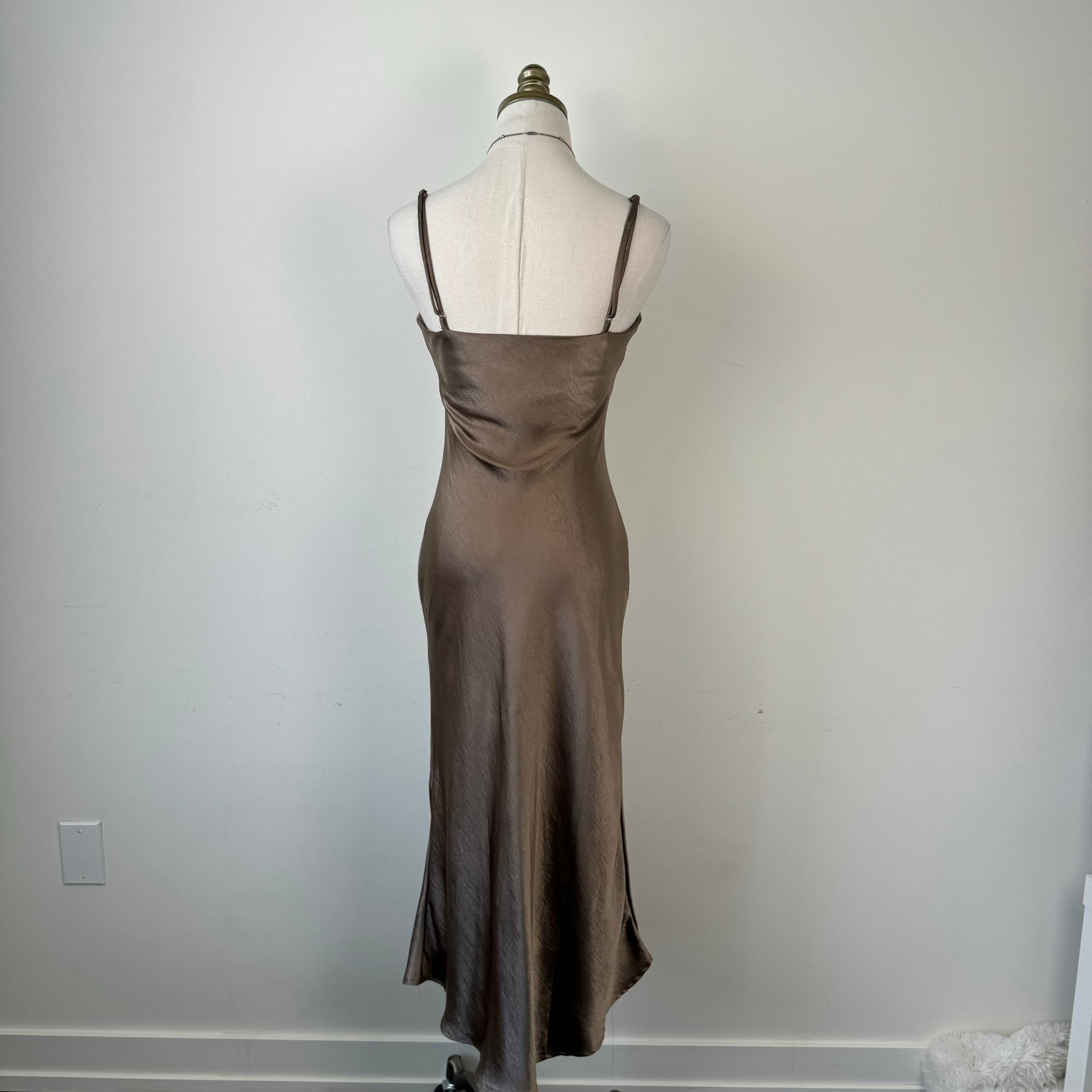 Brown Satin Midi Dress