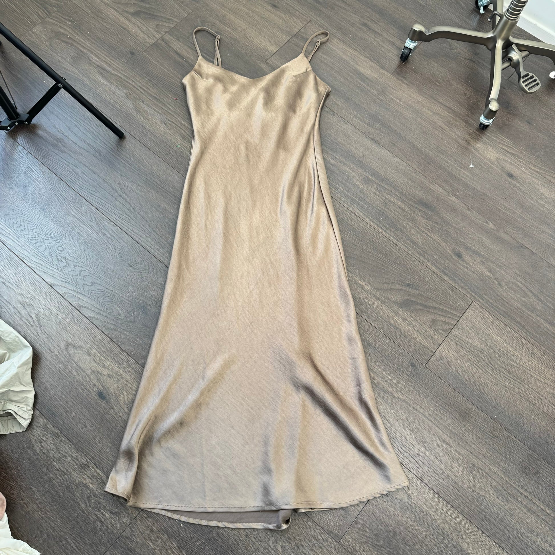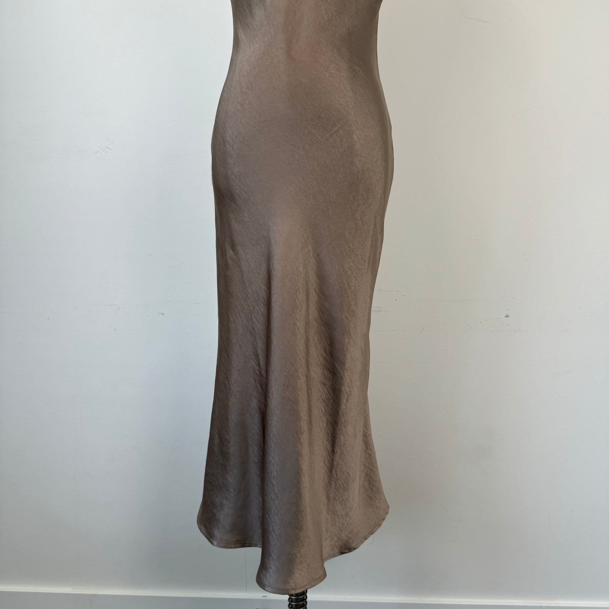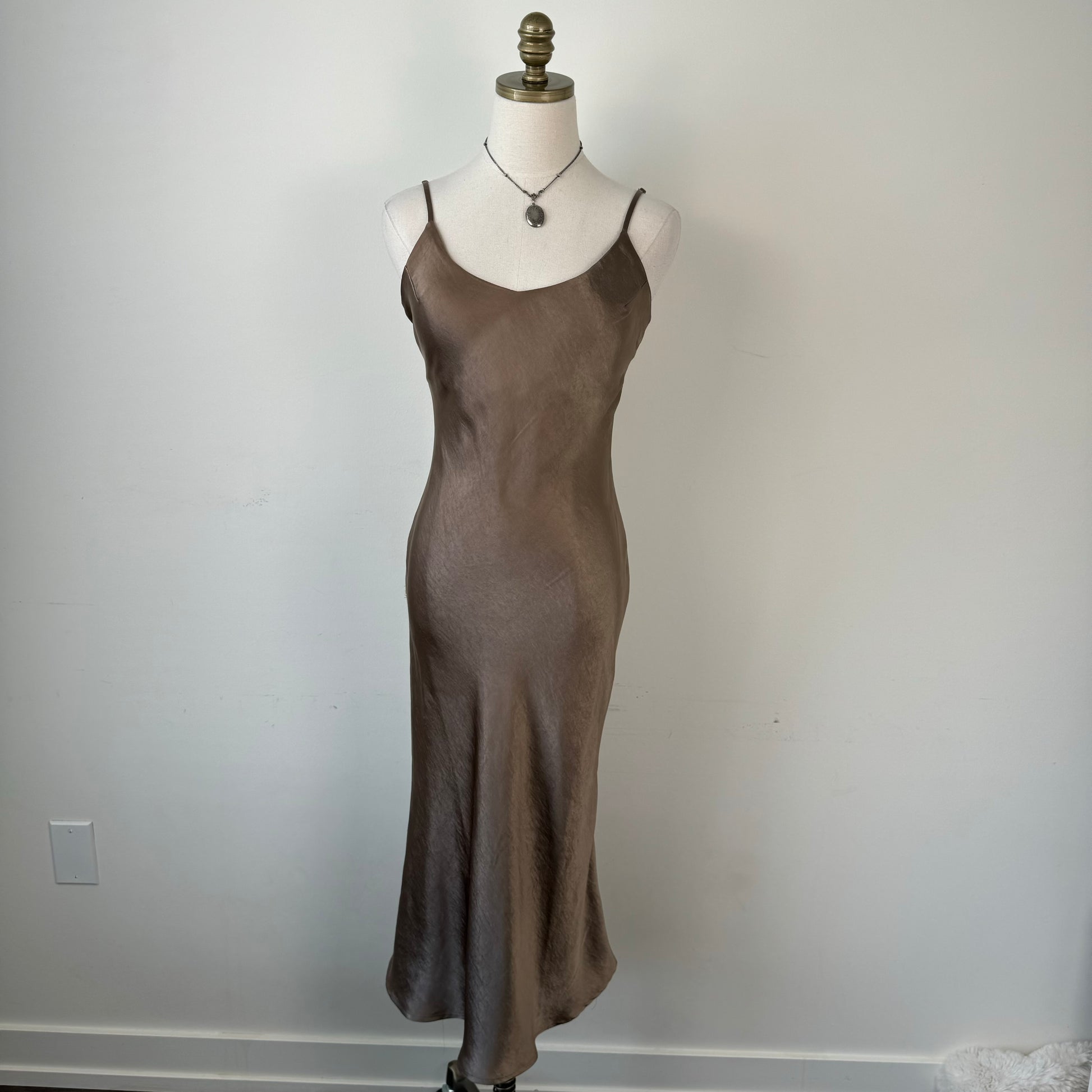 Brown Satin Midi Dress