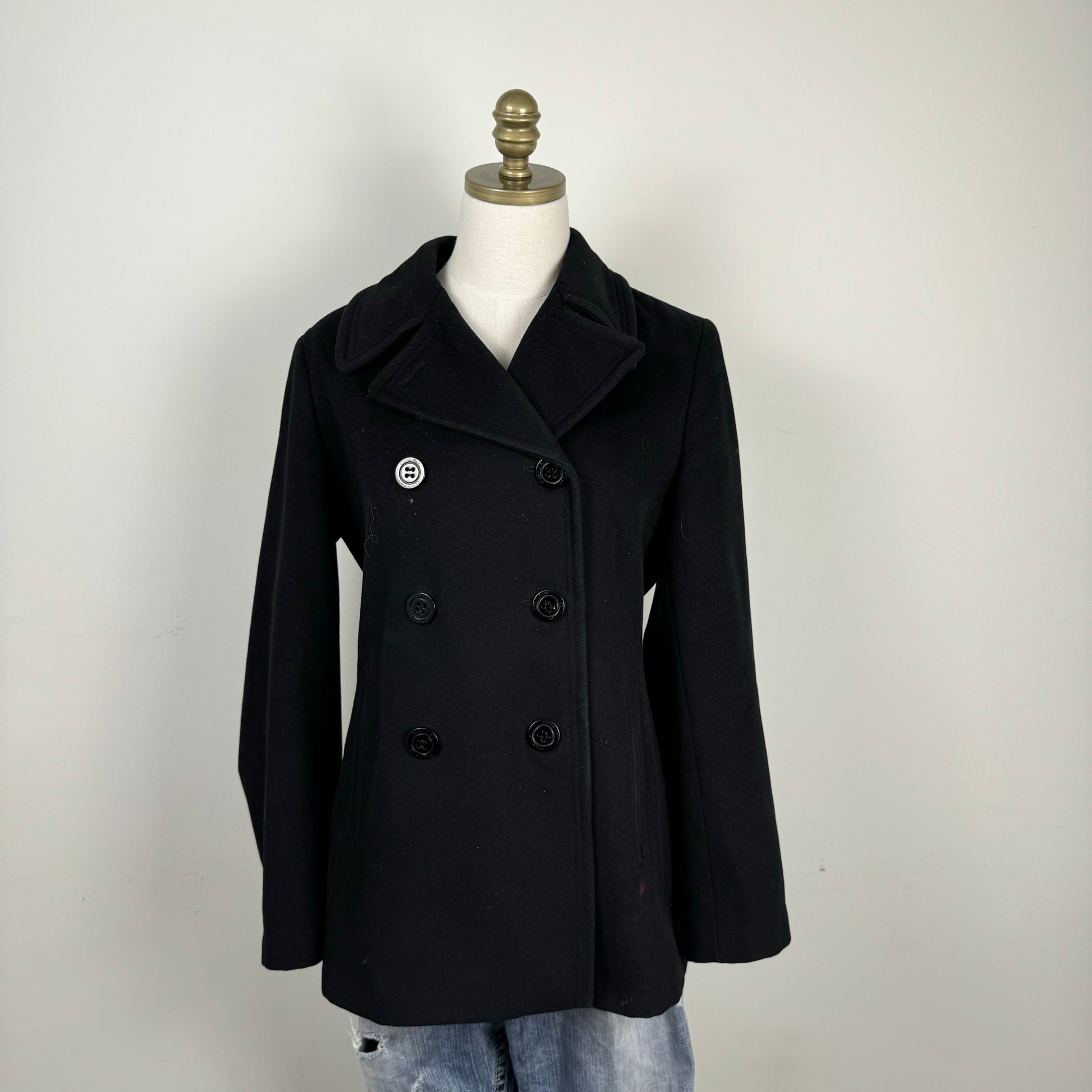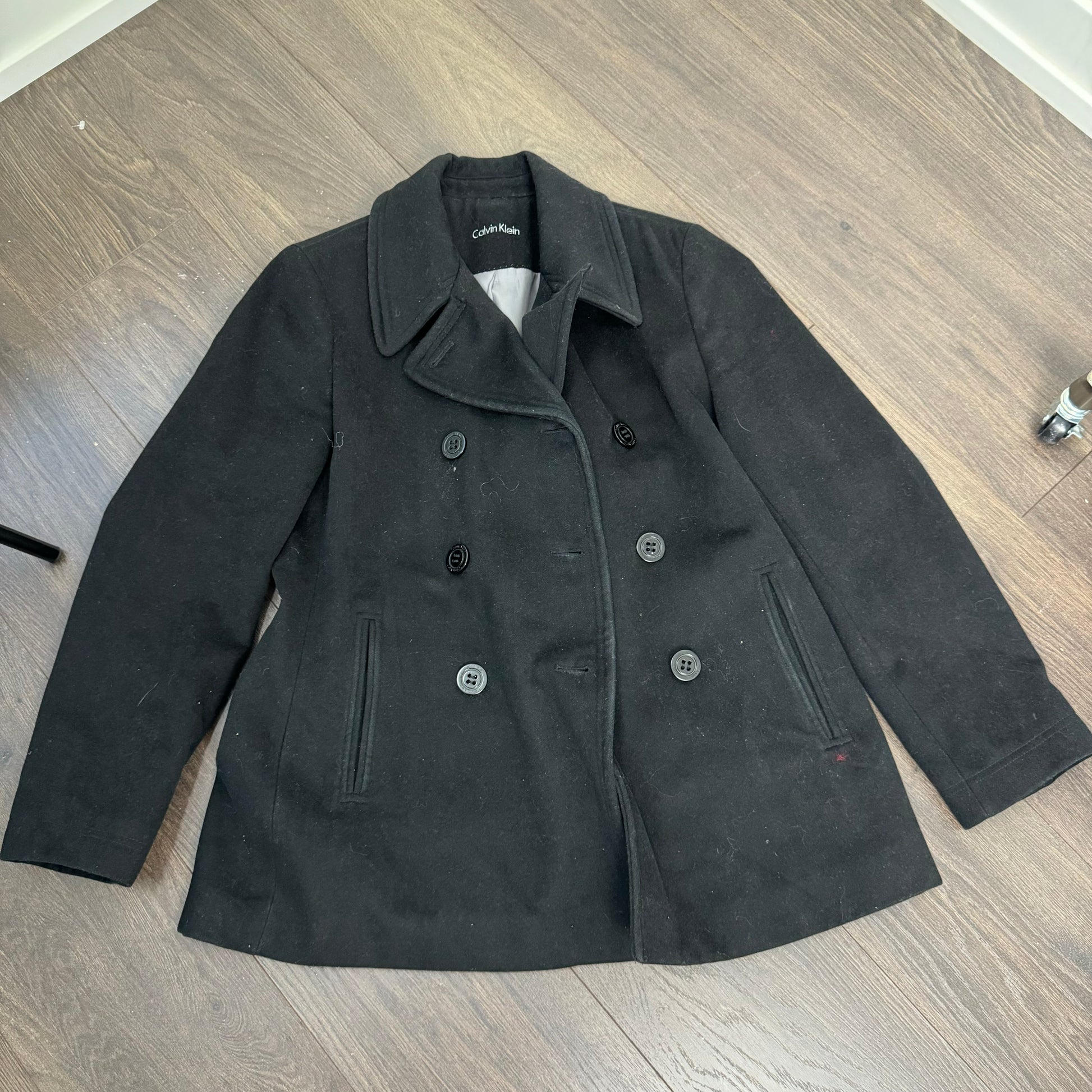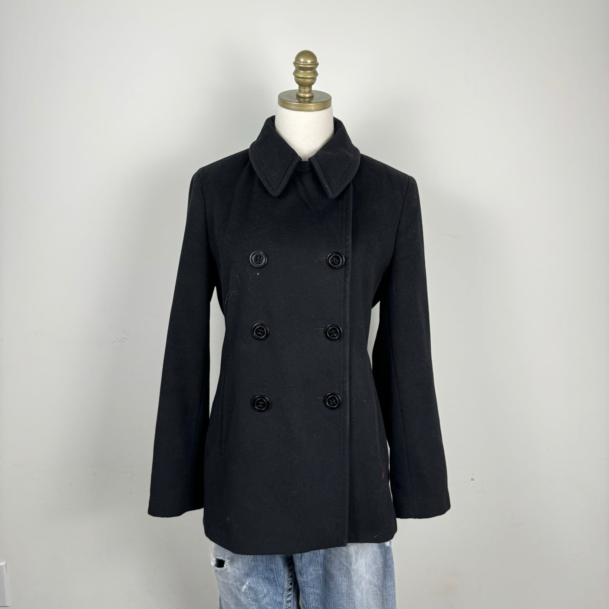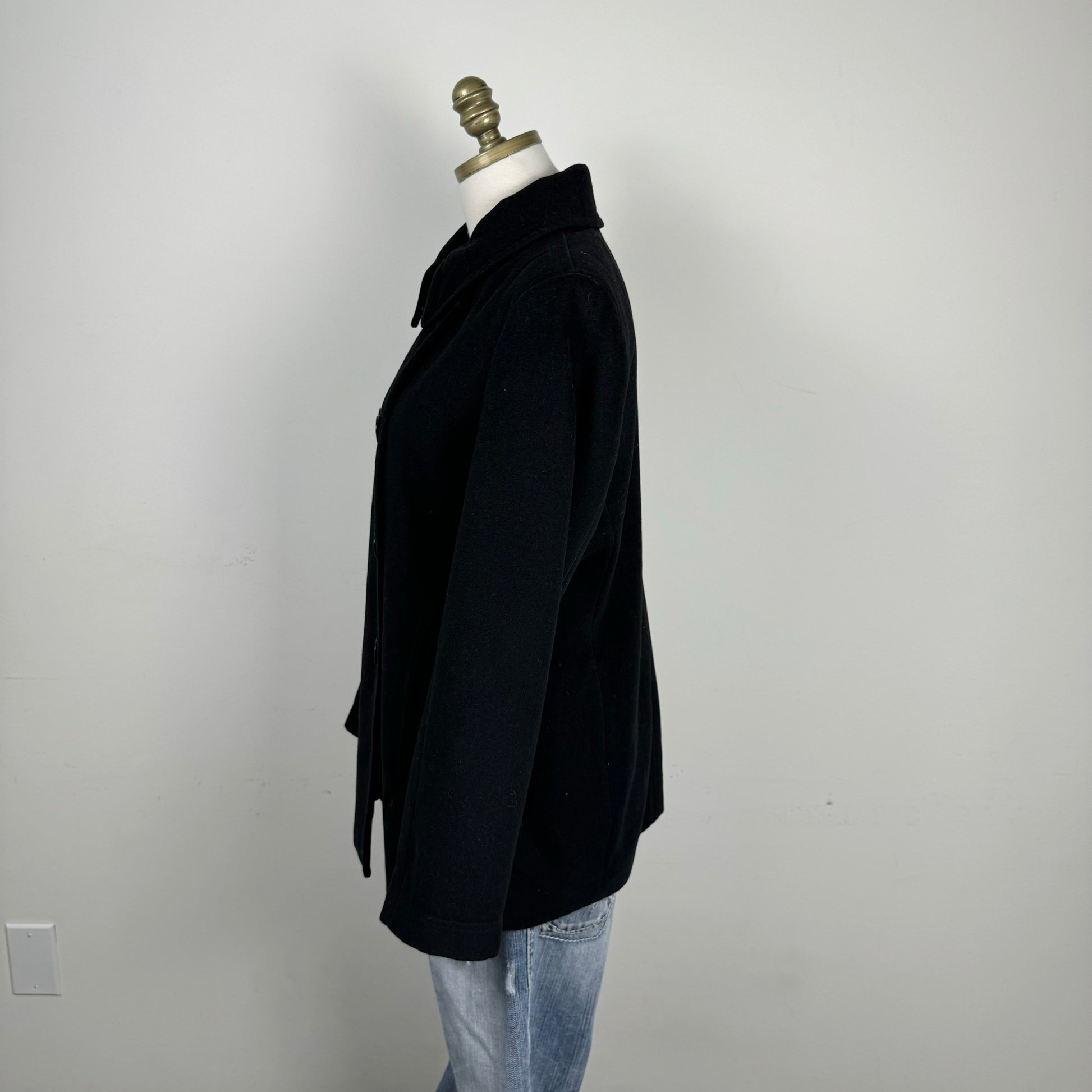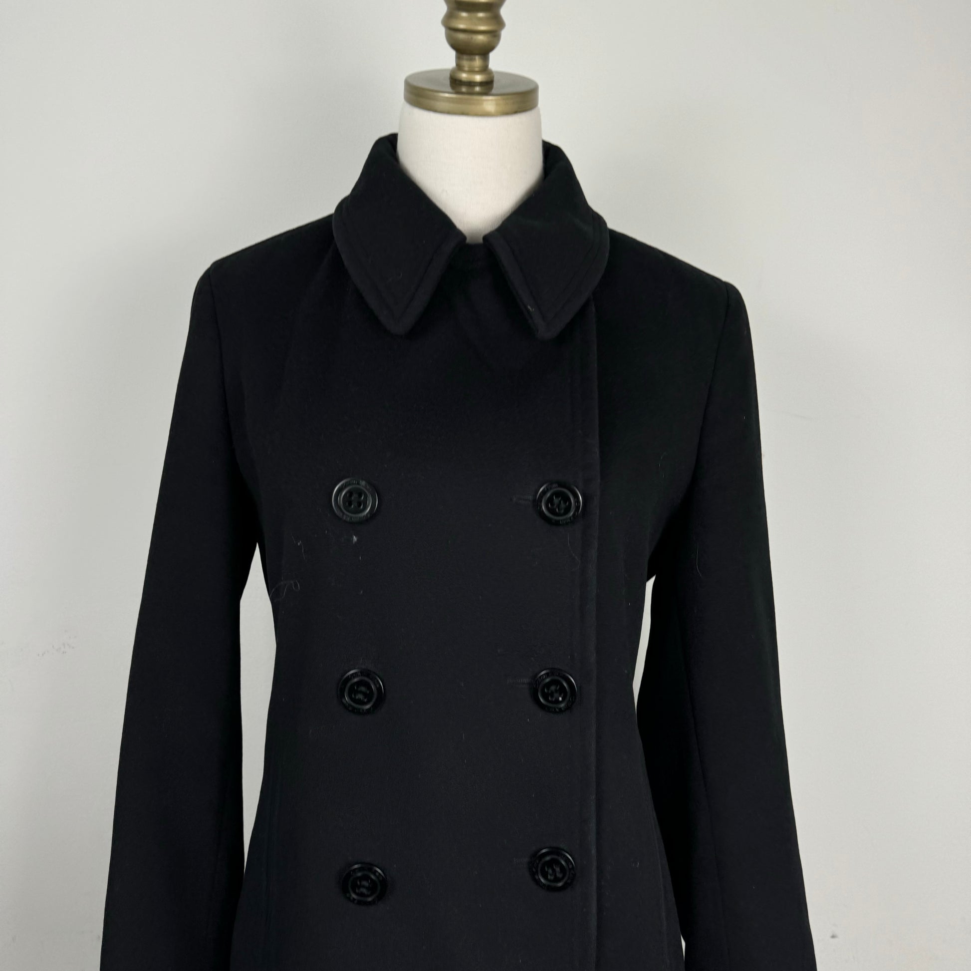 Details: Vintage long wool coat in black with black fur trim collar and lining.