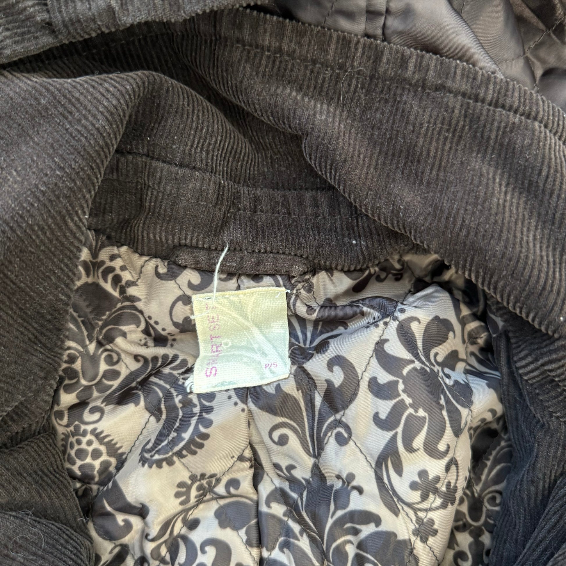 Details: Dark brown corduroy trench coat with a hoodie, double-breasted front, lined interior, brown buttons, and attached waistbelt.