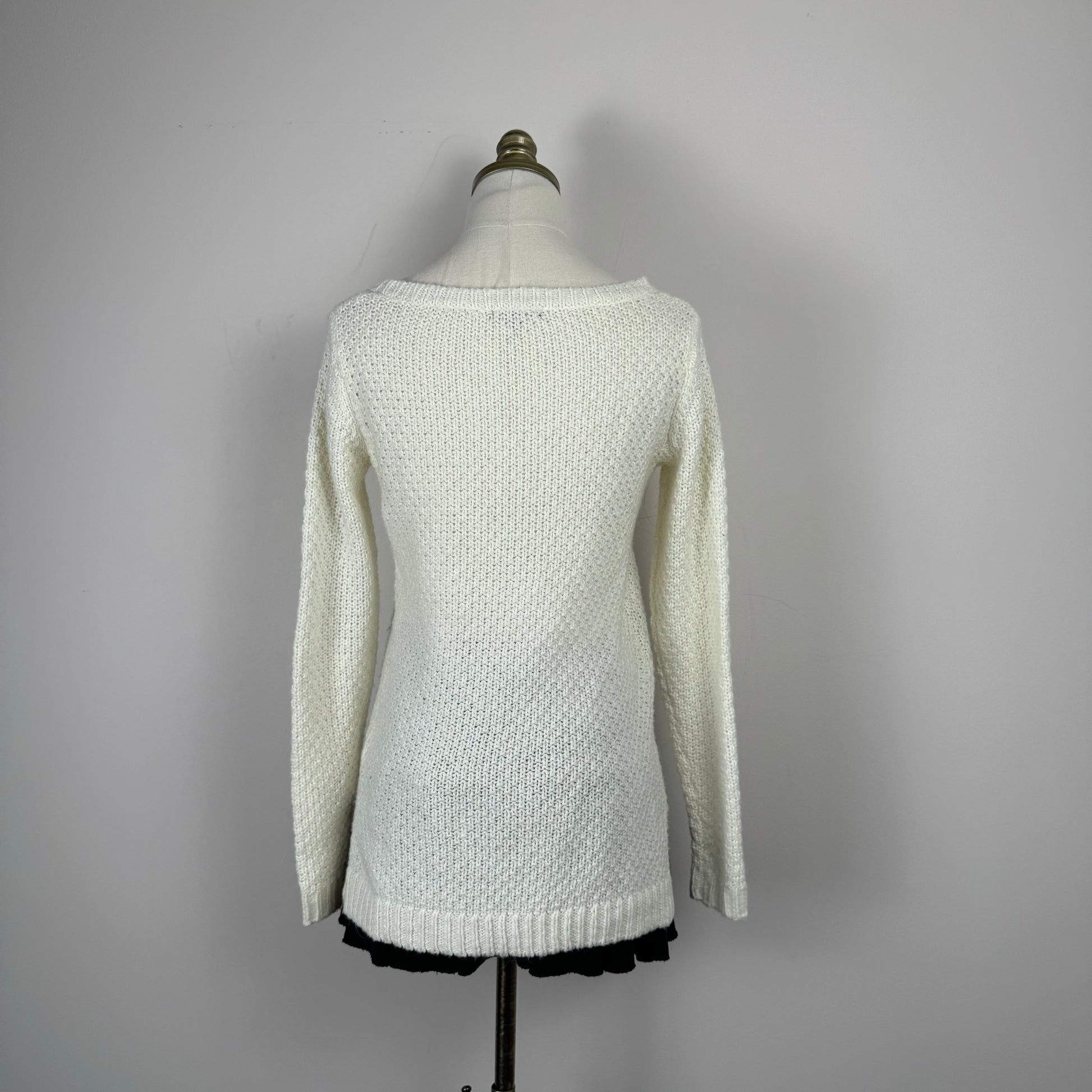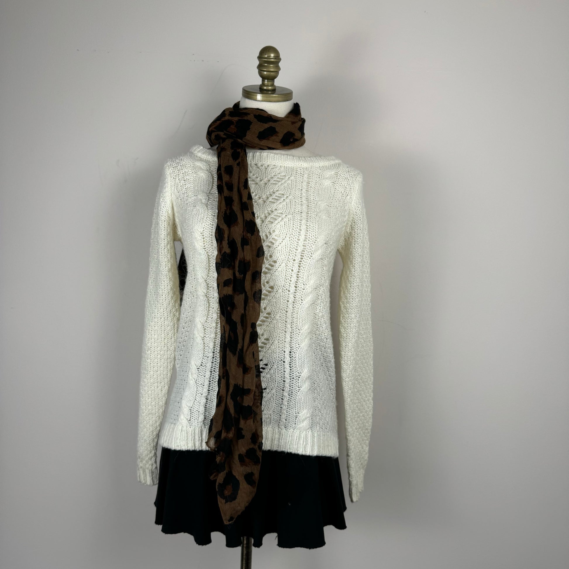 Details: Cream cable knit sweater in an open-knit design, Rory Gilmore style.