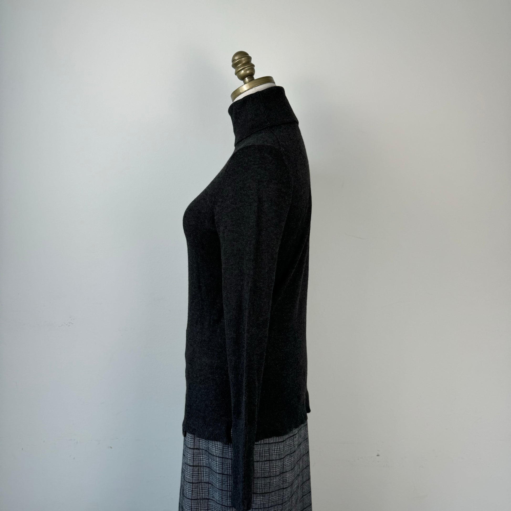 Dark Grey Turtleneck Knit Long Sleeve Top