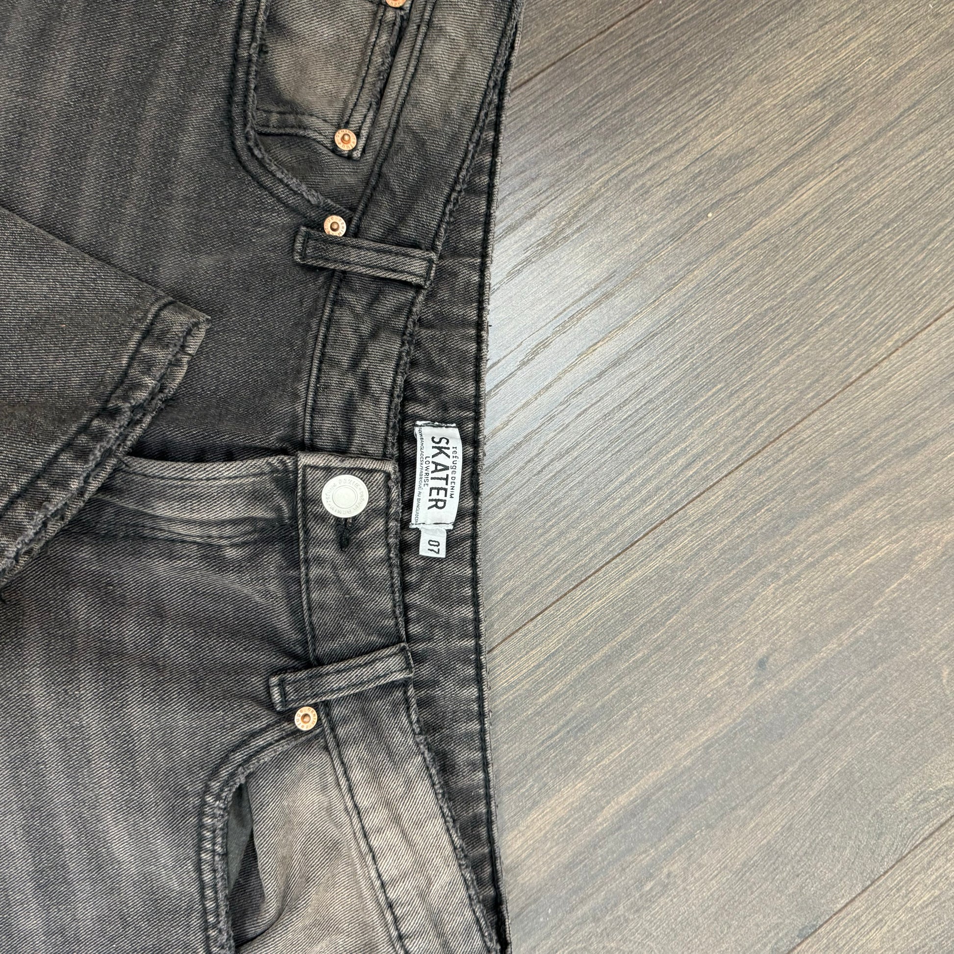Details: Low rise baggy jeans in a faded charcoal black color.