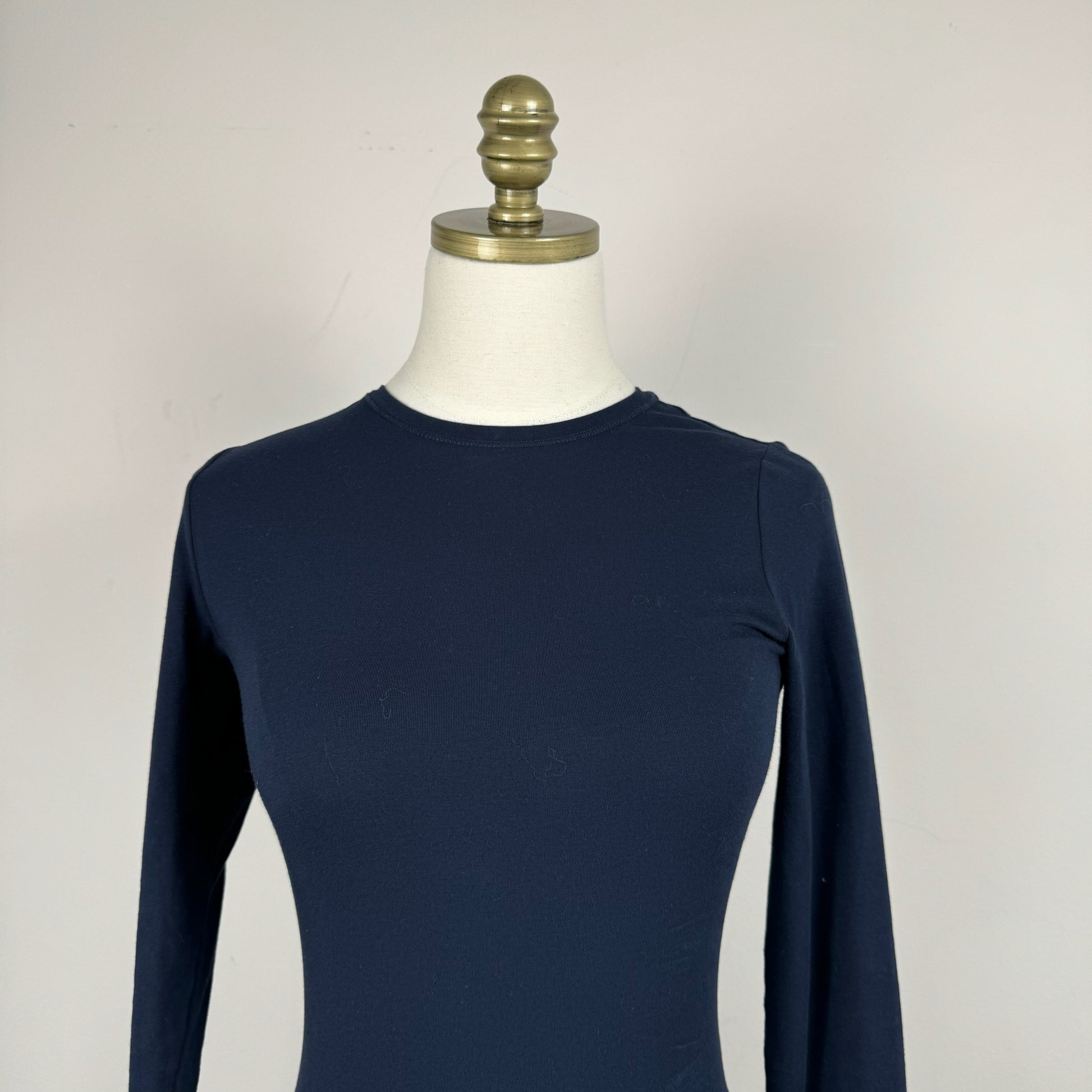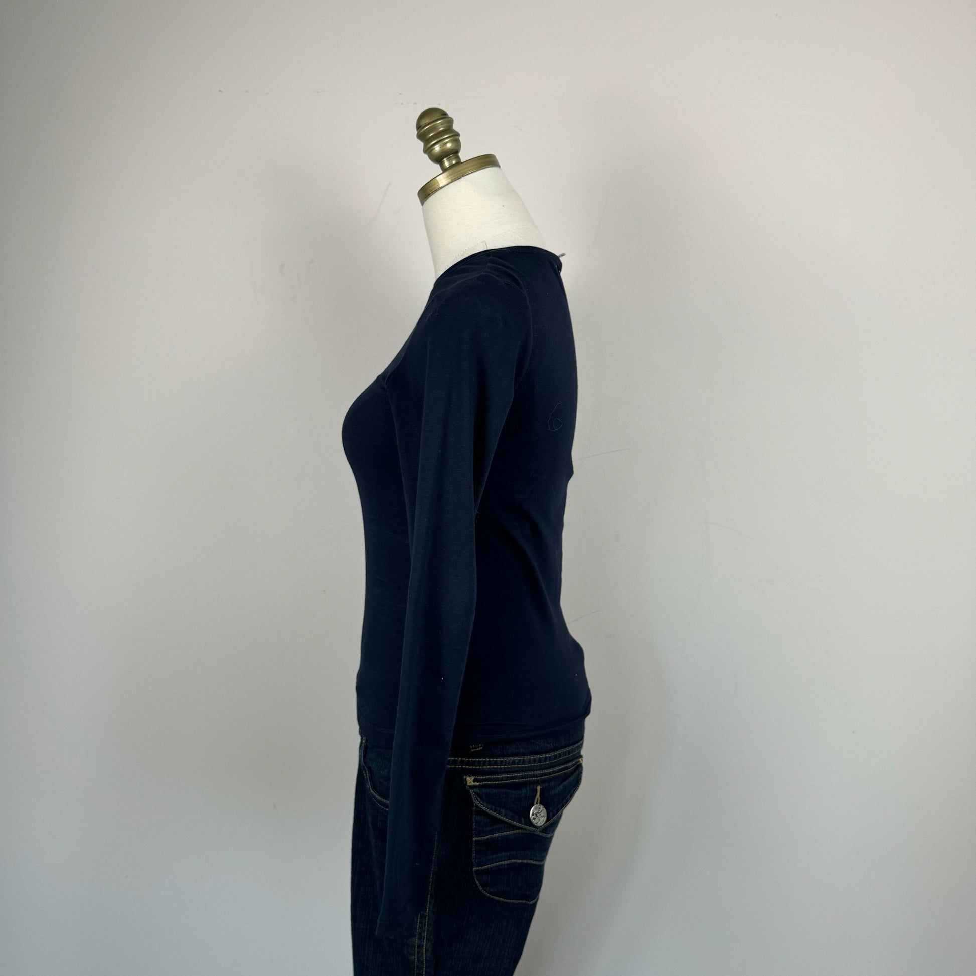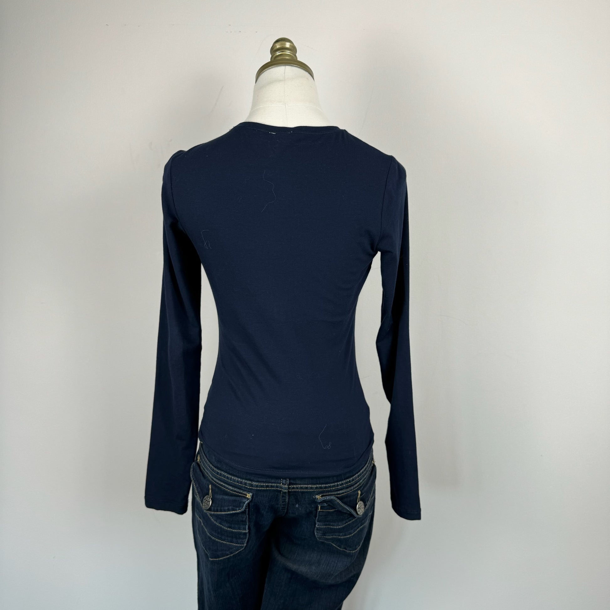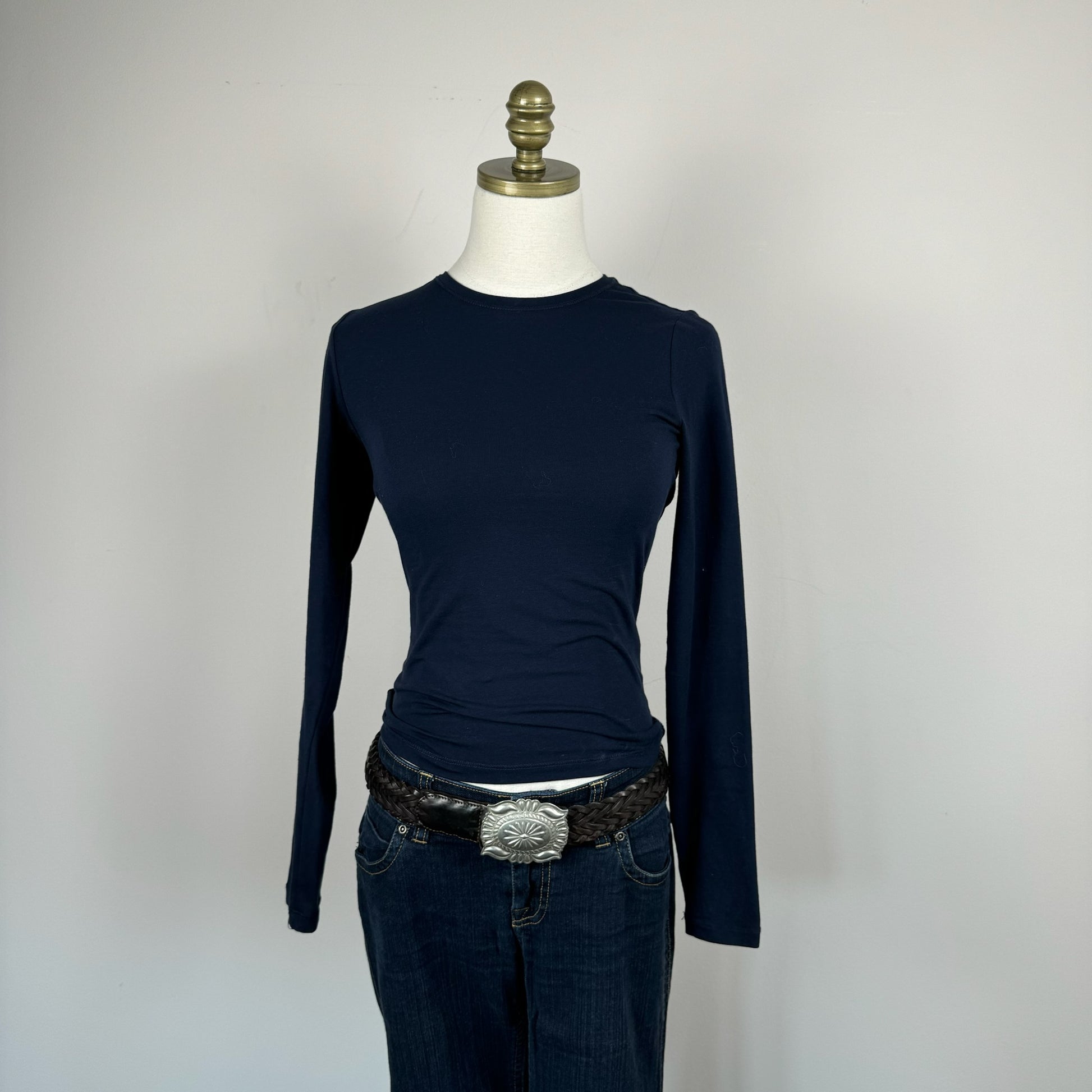 Details: Navy blue fitted long sleeve top with a flattering fit.
