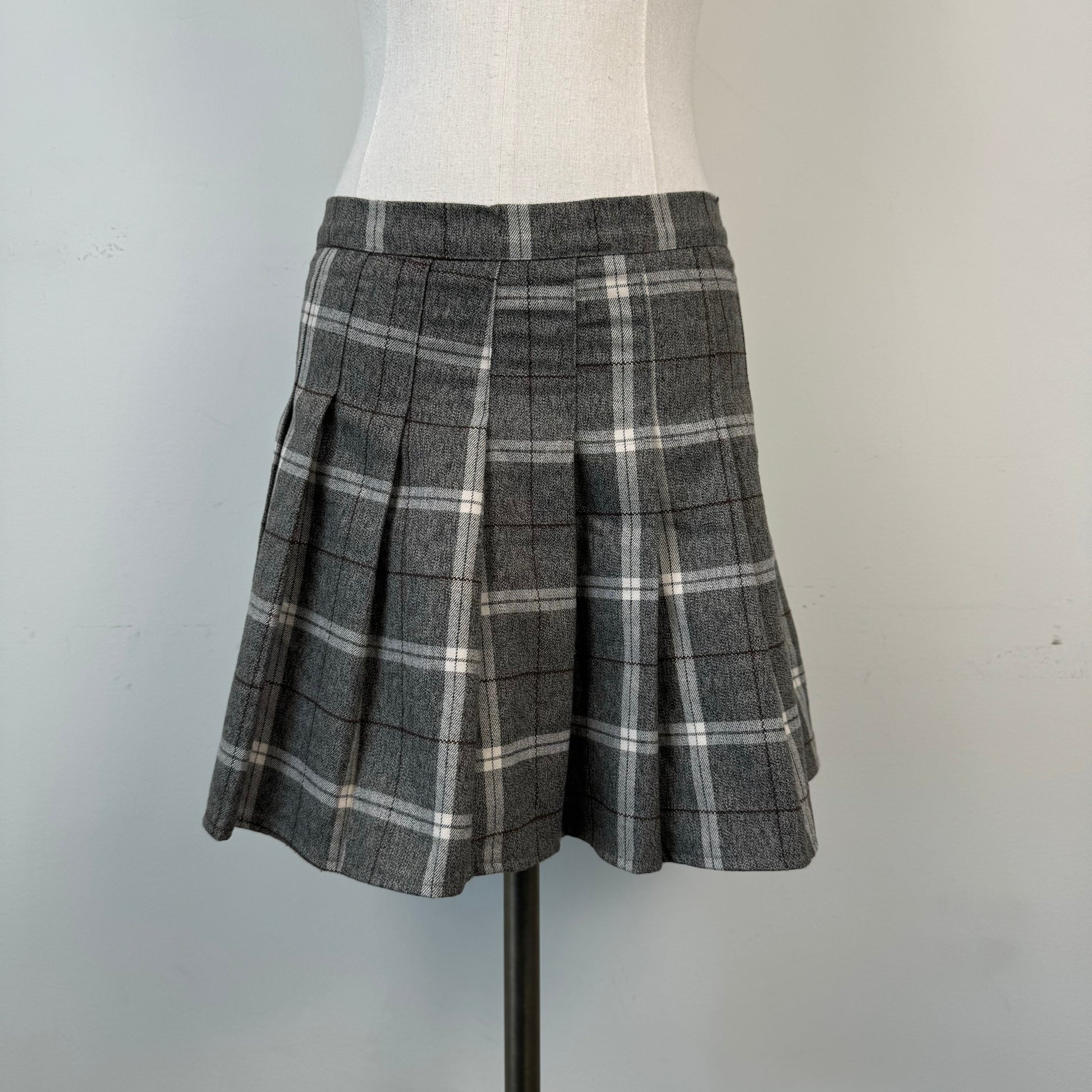 Details: Grey plaid pleated mini skirt with thick material and built-in shorts underneath.
