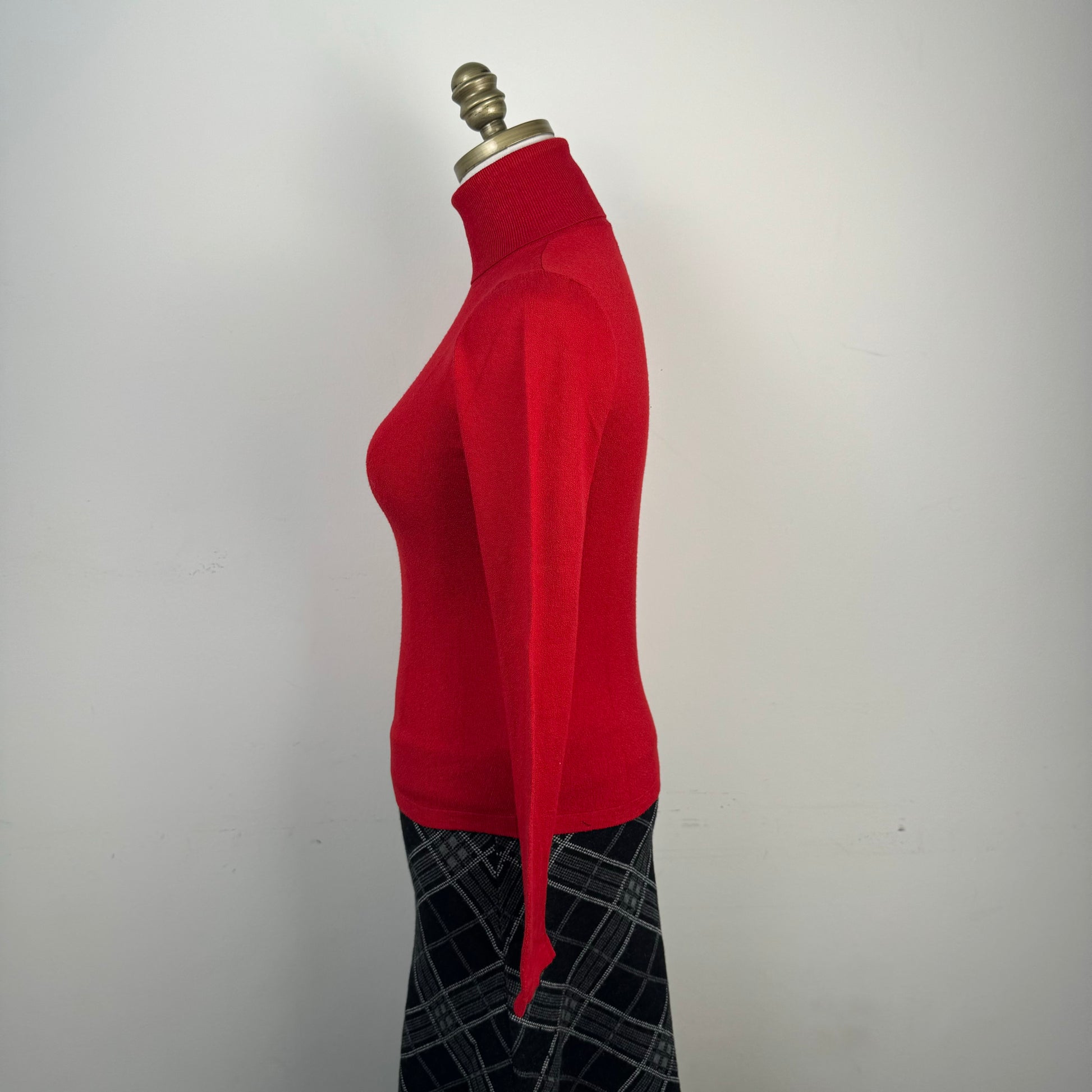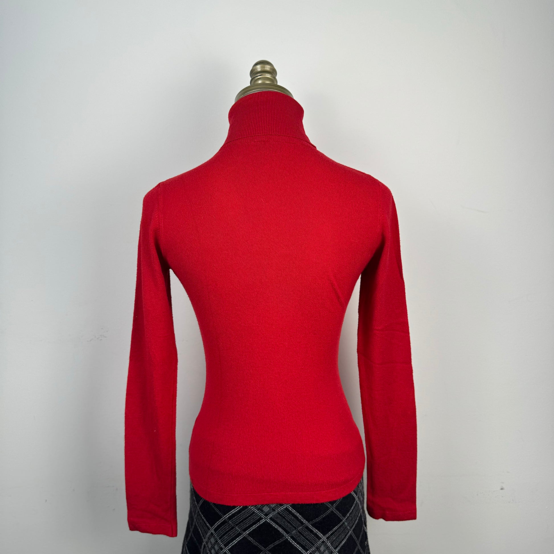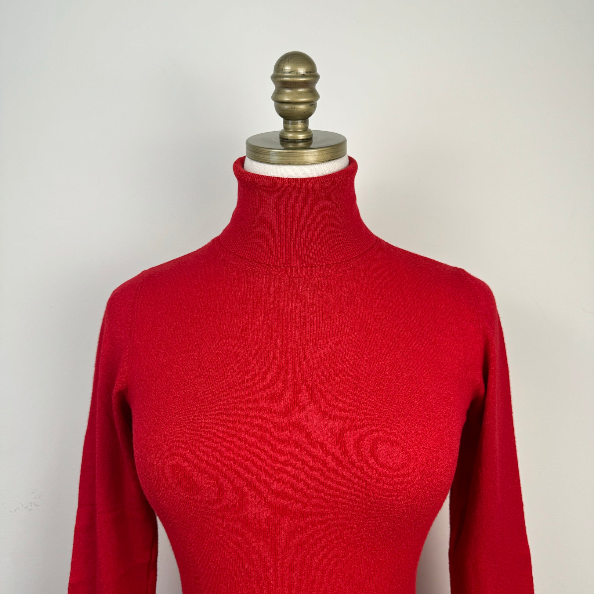 Details: Red knit fitted turtleneck sweater made in Italy, brand Fascino.