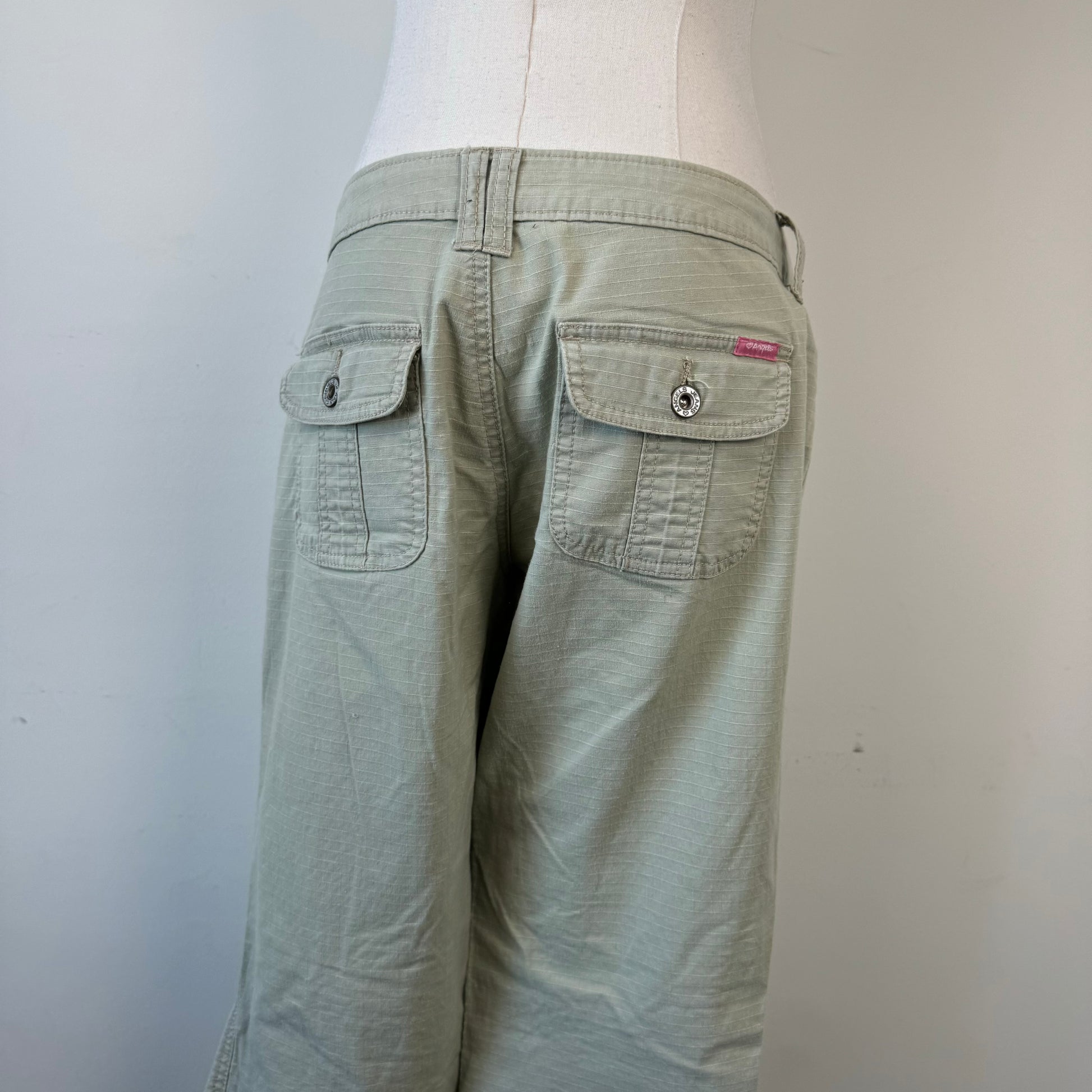 Details: Vintage Y2K beige/khaki utility low rise flared trousers.