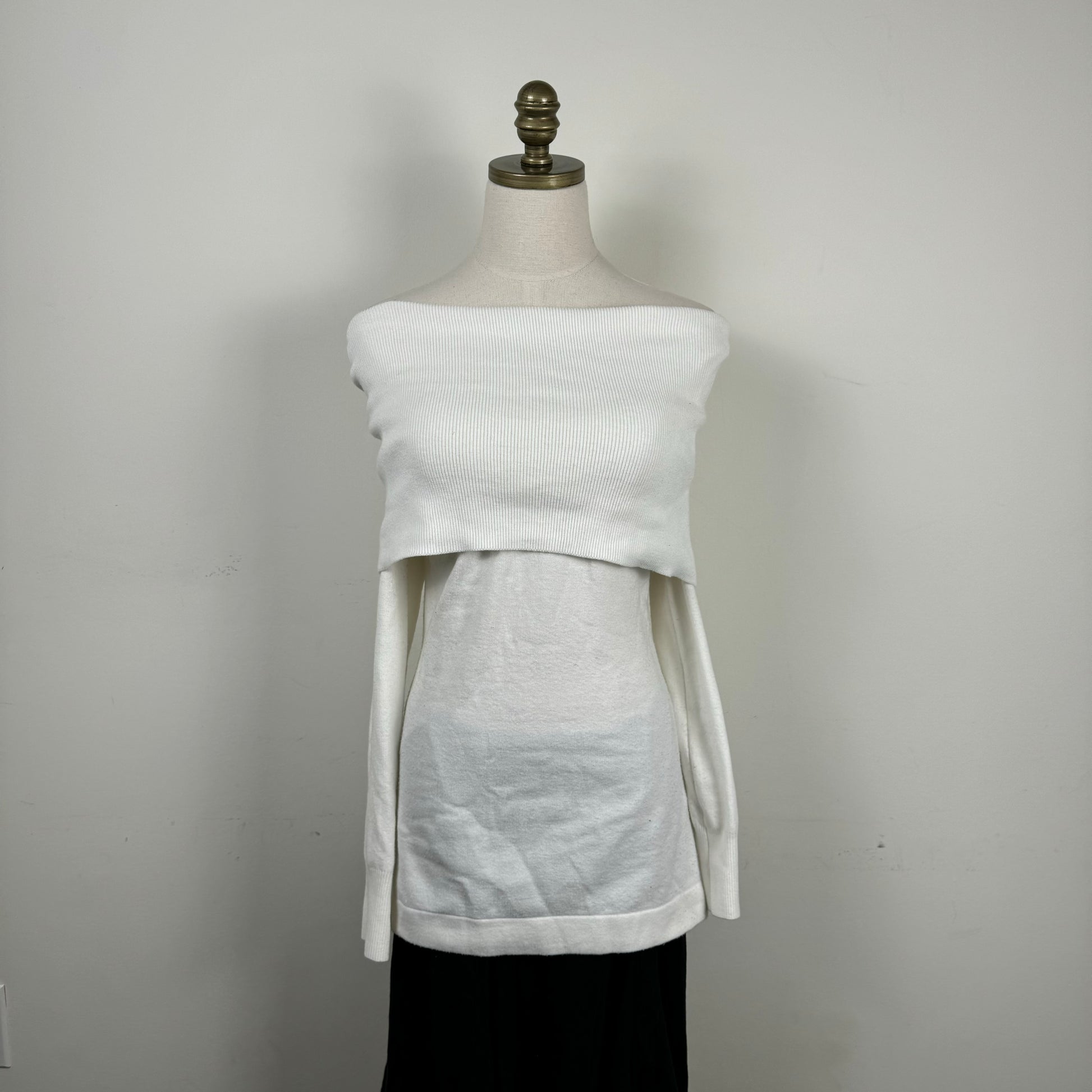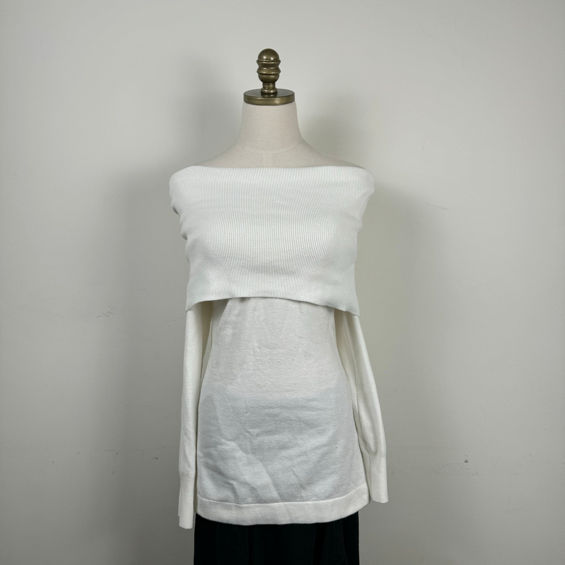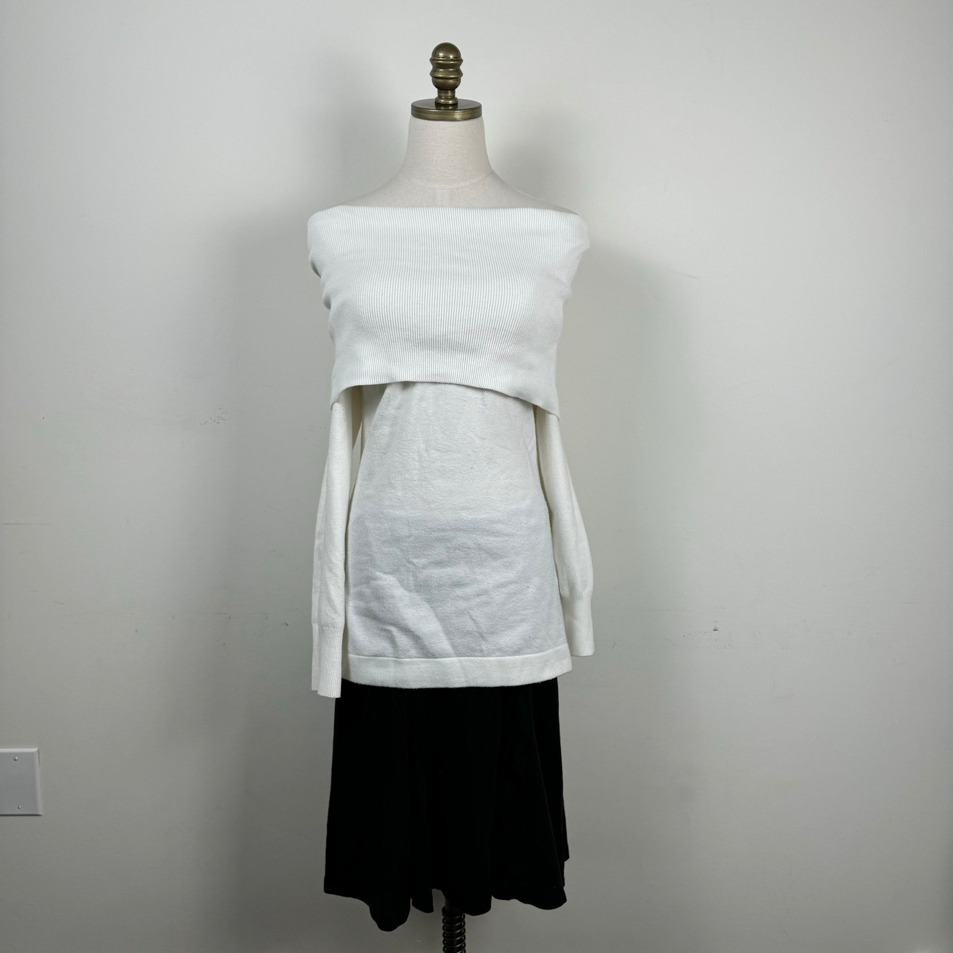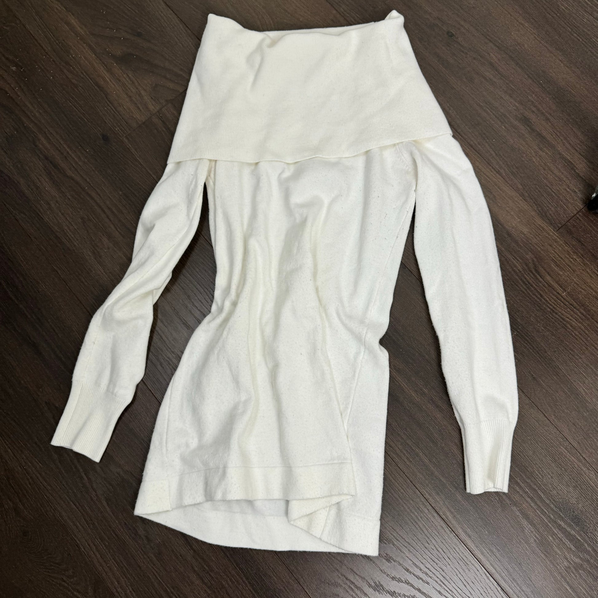 Details: White knit off the shoulder sweater/mini dress.