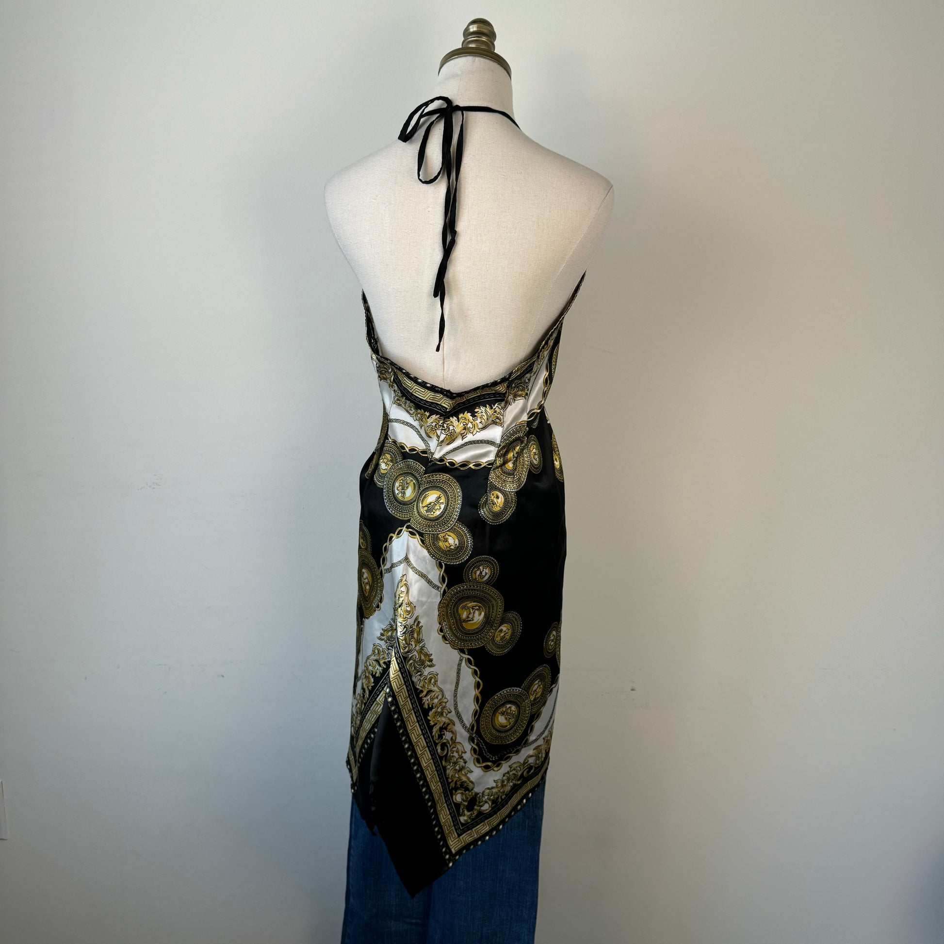 Details: Vintage satin scarf design halter top in an asymmetric style.