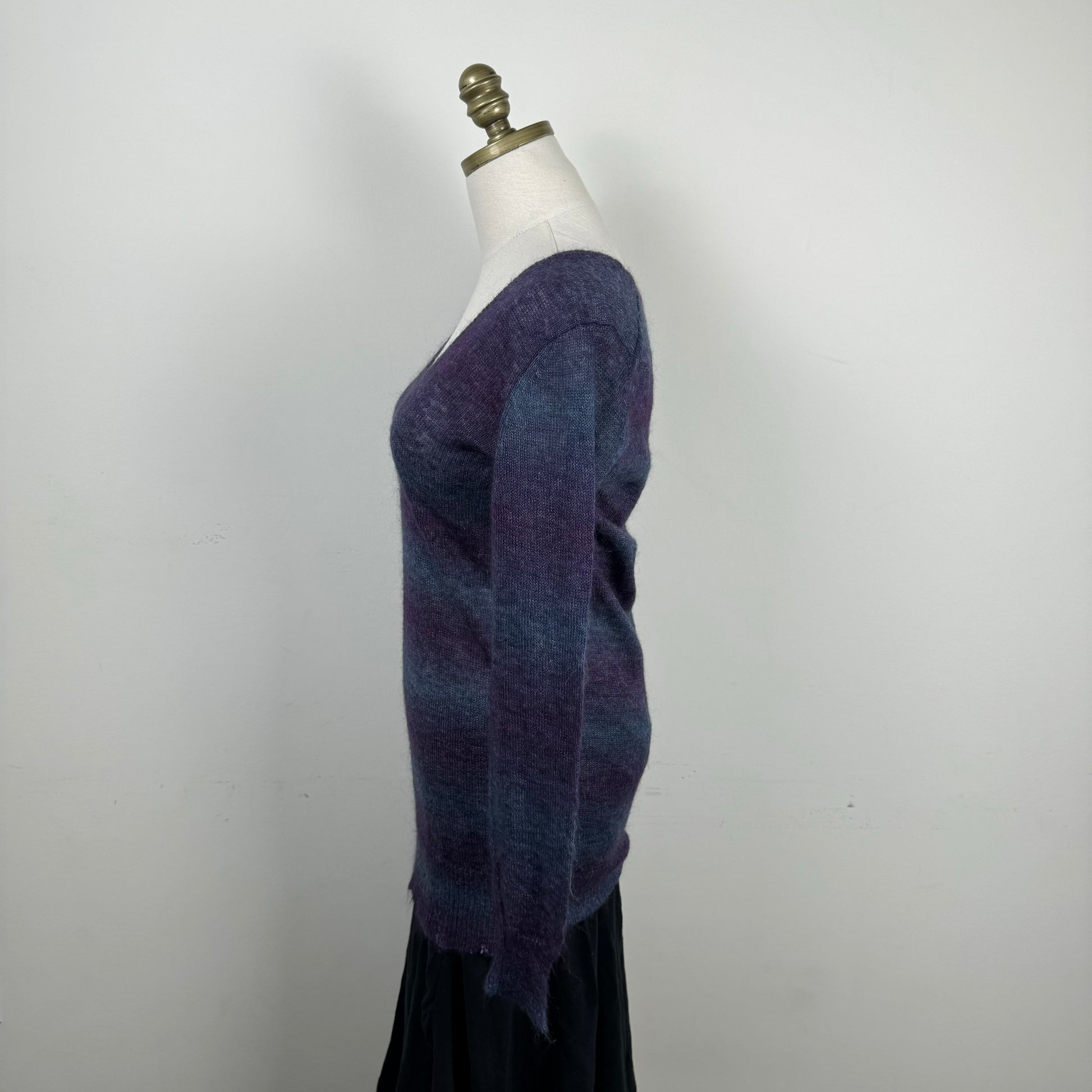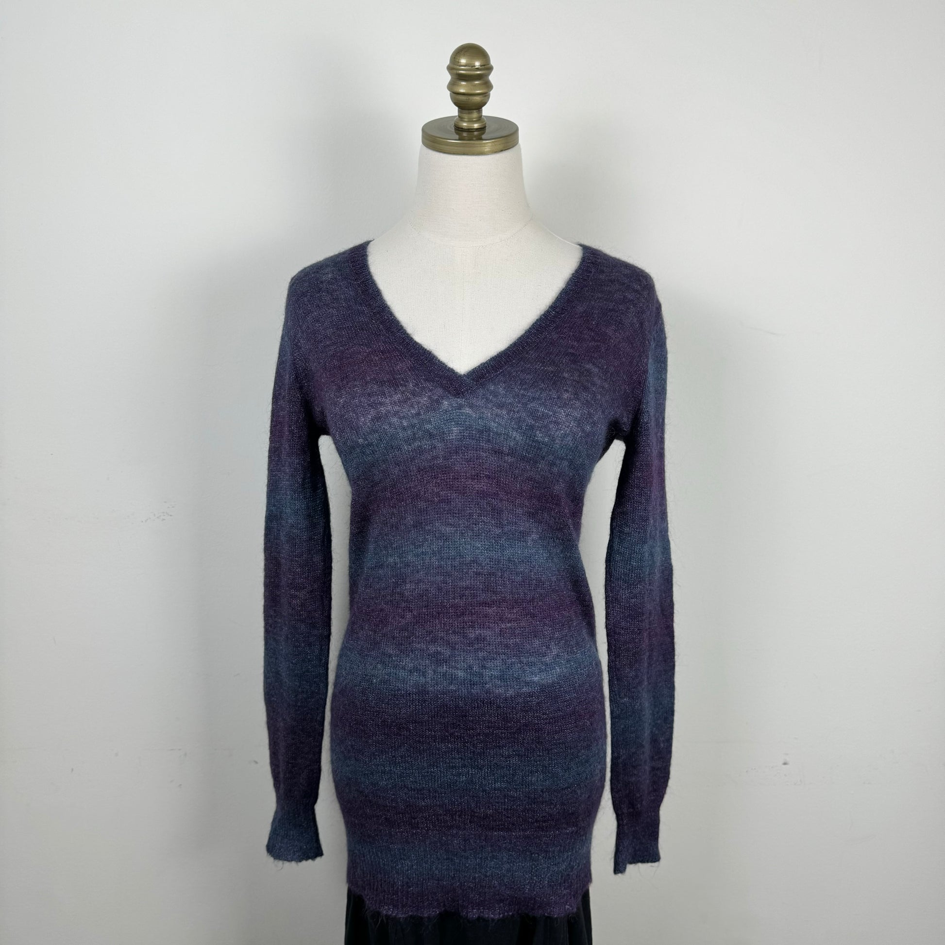 Details: Mohair blend gradient knit sweater in purple and blue.