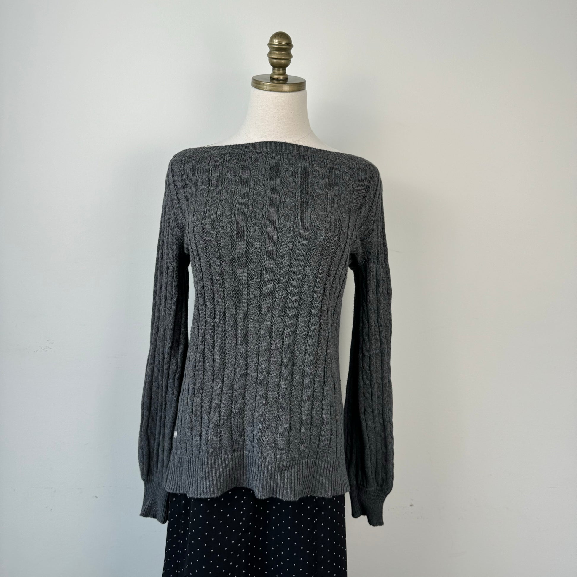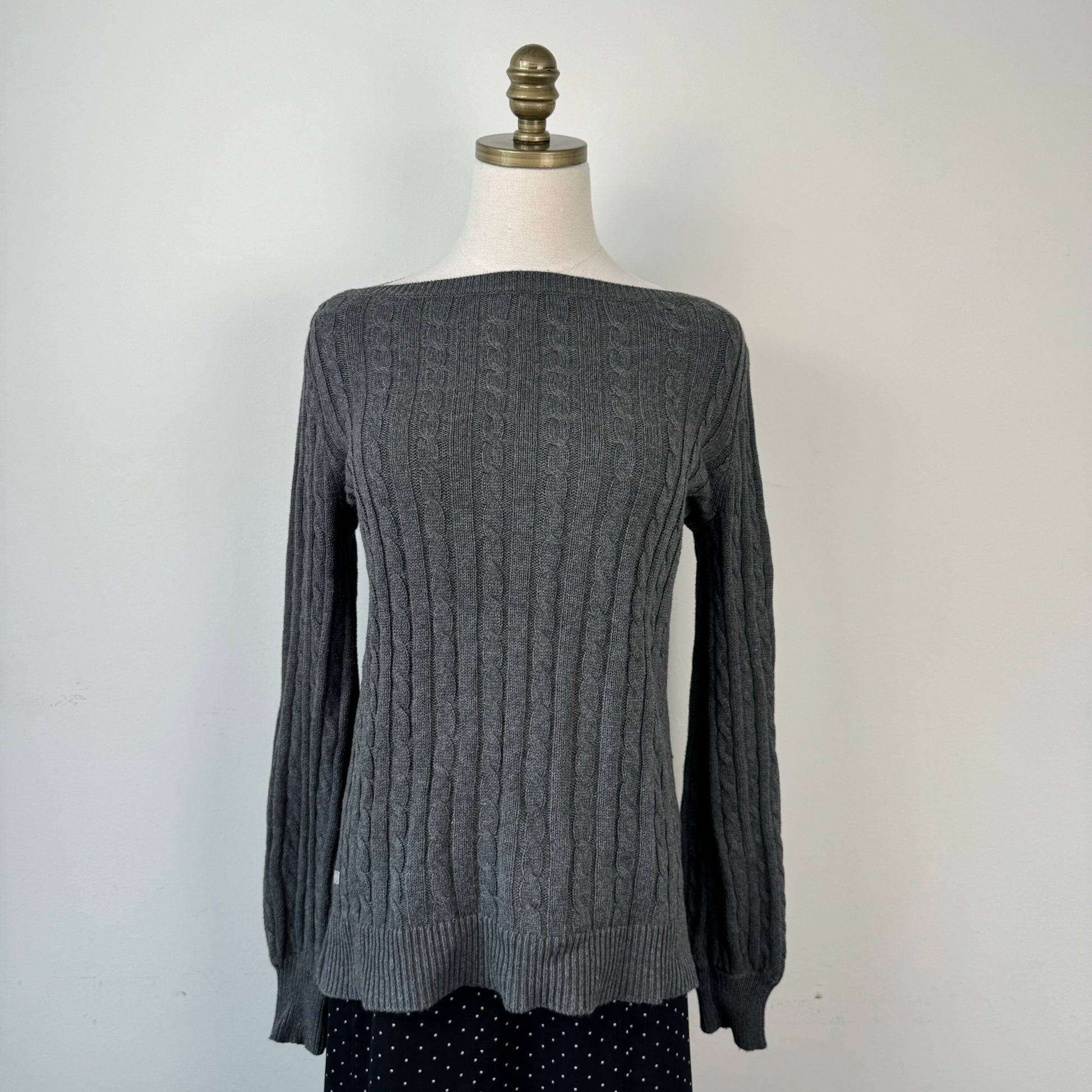 Ralph Lauren Boat Neck Grey Cable Knit Sweater