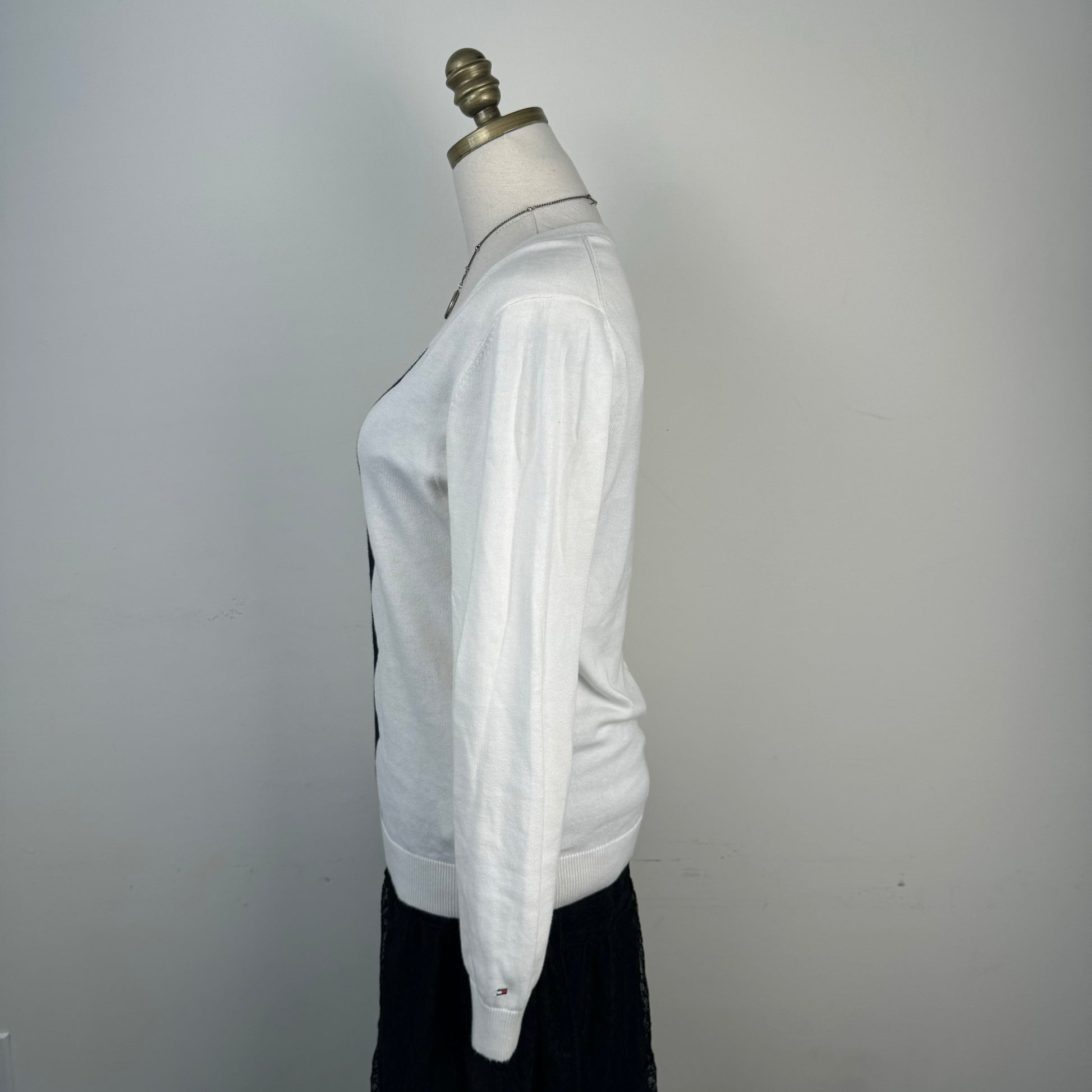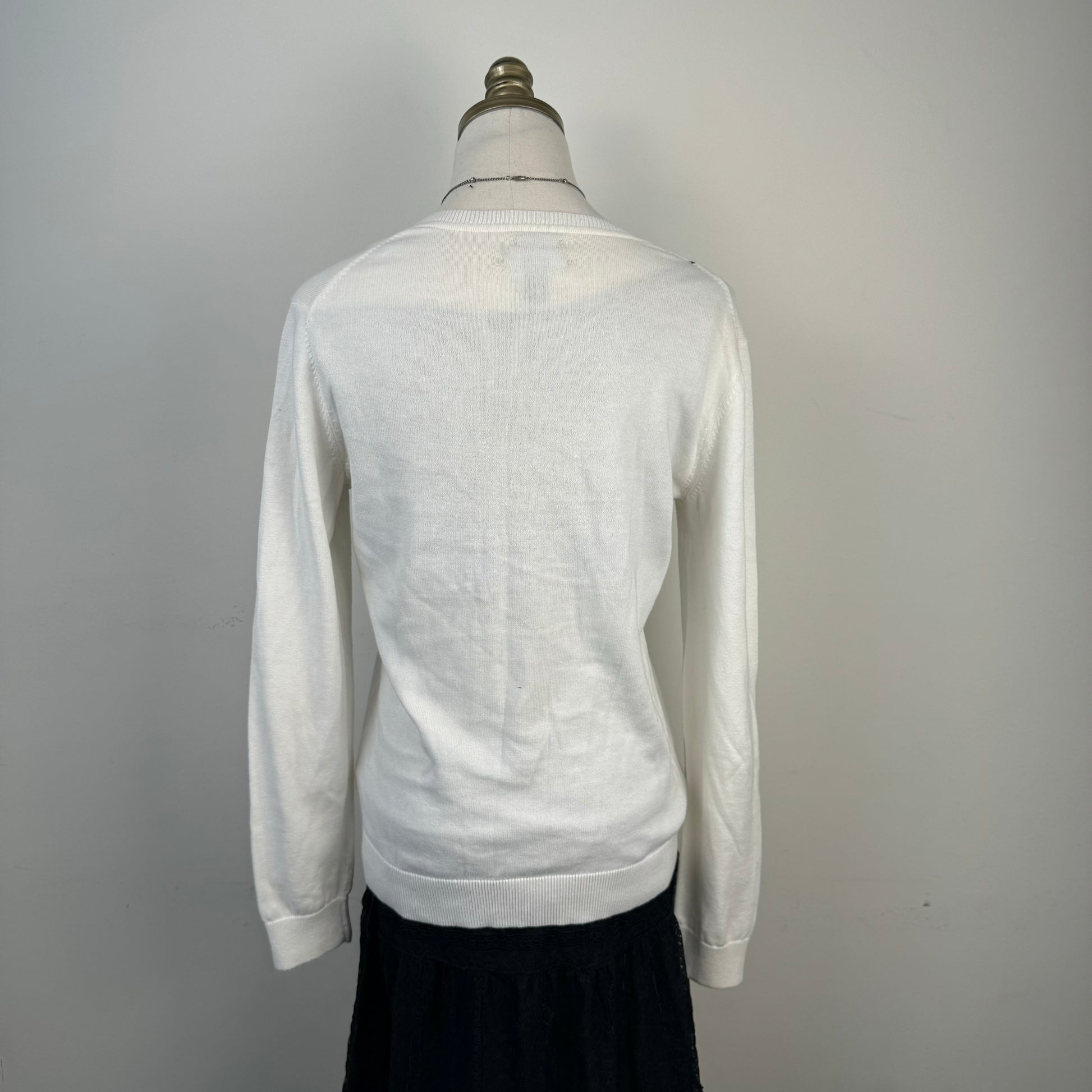Details: Cream argyle sweater with a wide V-neck and pink and black argyle pattern.