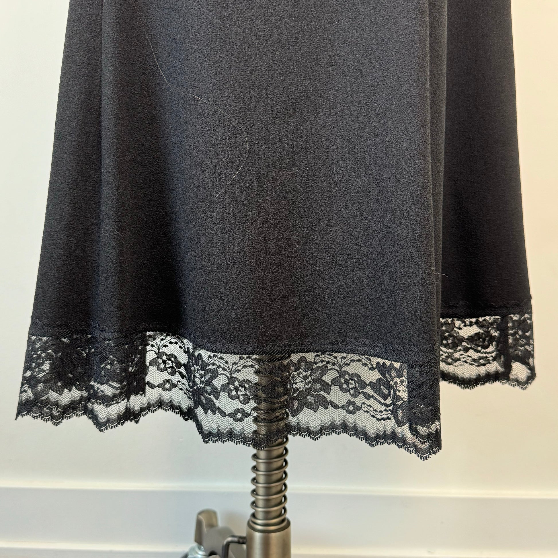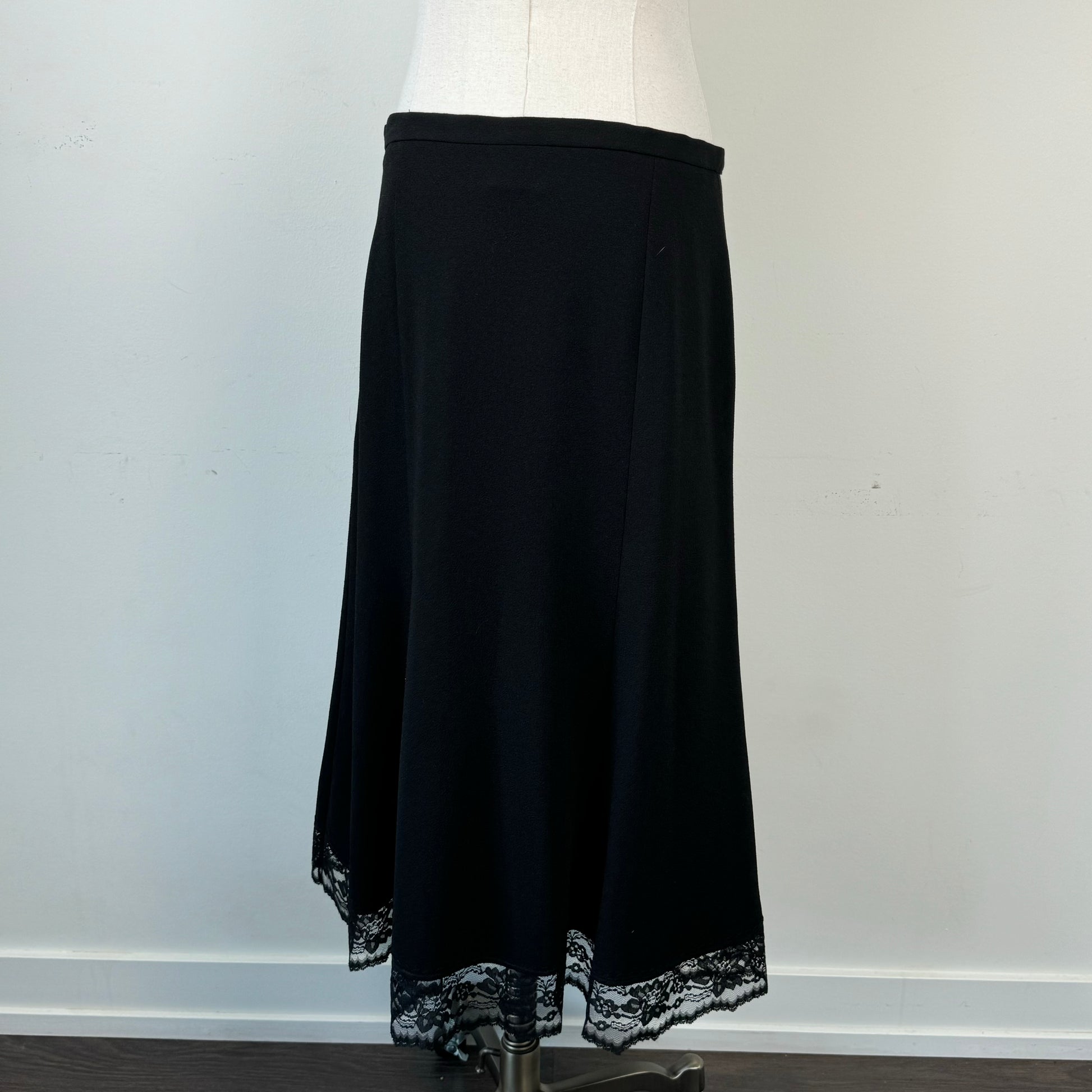 Details: Vintage black midi/maxi skirt with lace trim and a slightly flared hem.