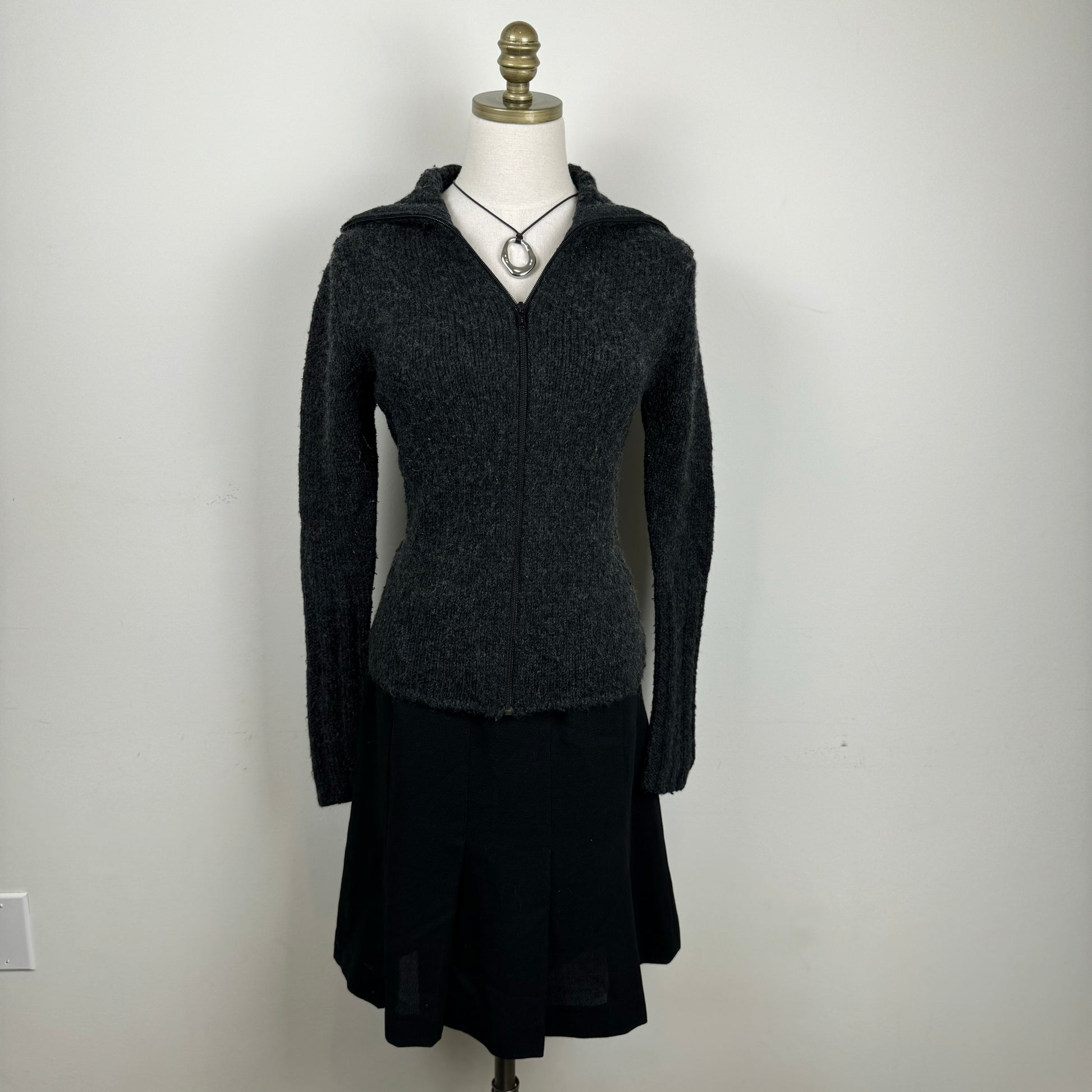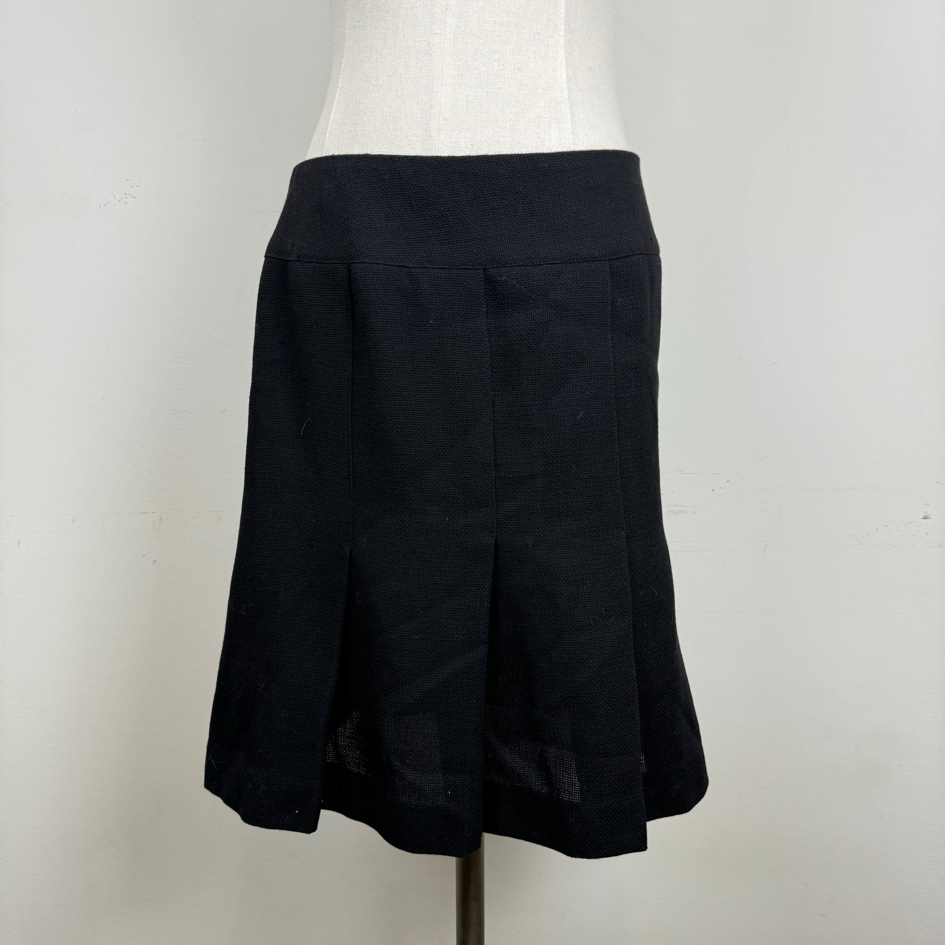 Vintage Black Wool Pleated Midi Skirt