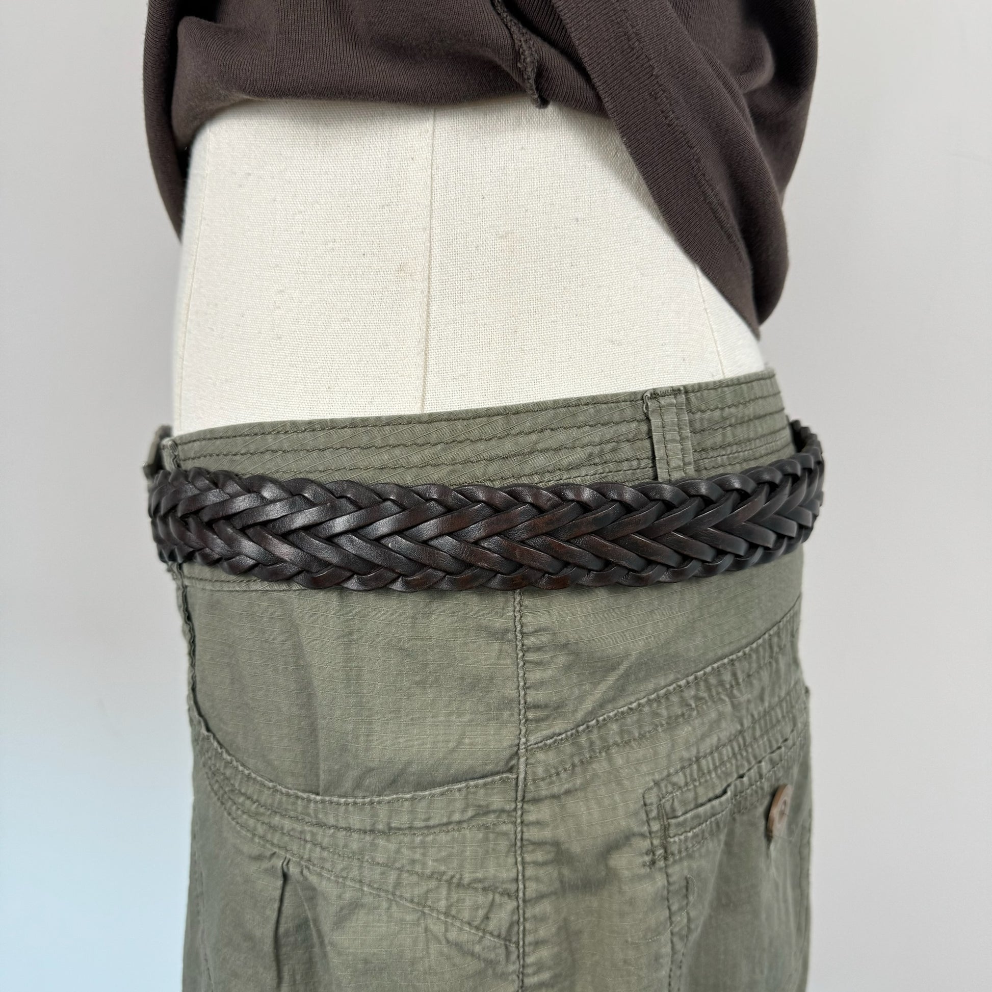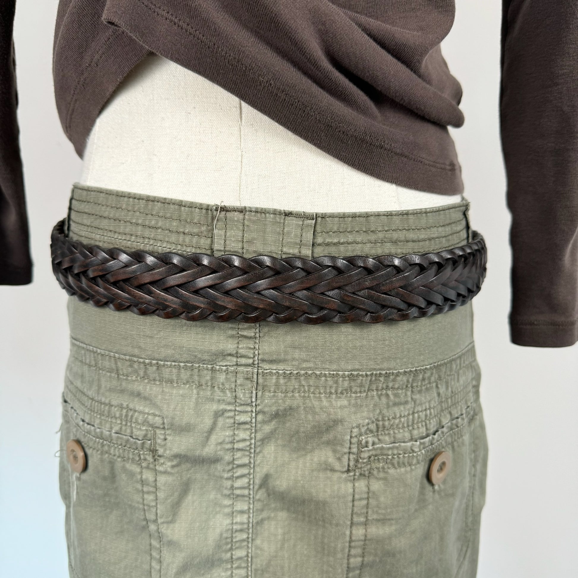 Vintage Cowboy Buckle Brown Woven Leather Belt