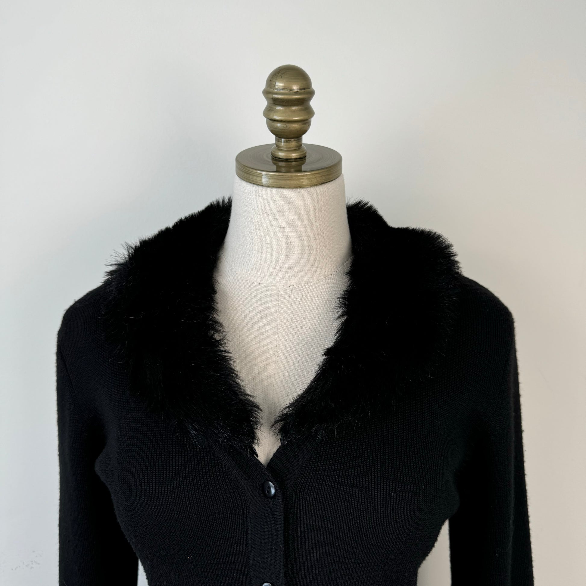 Vintage Fur Trim Button Up Cardigan