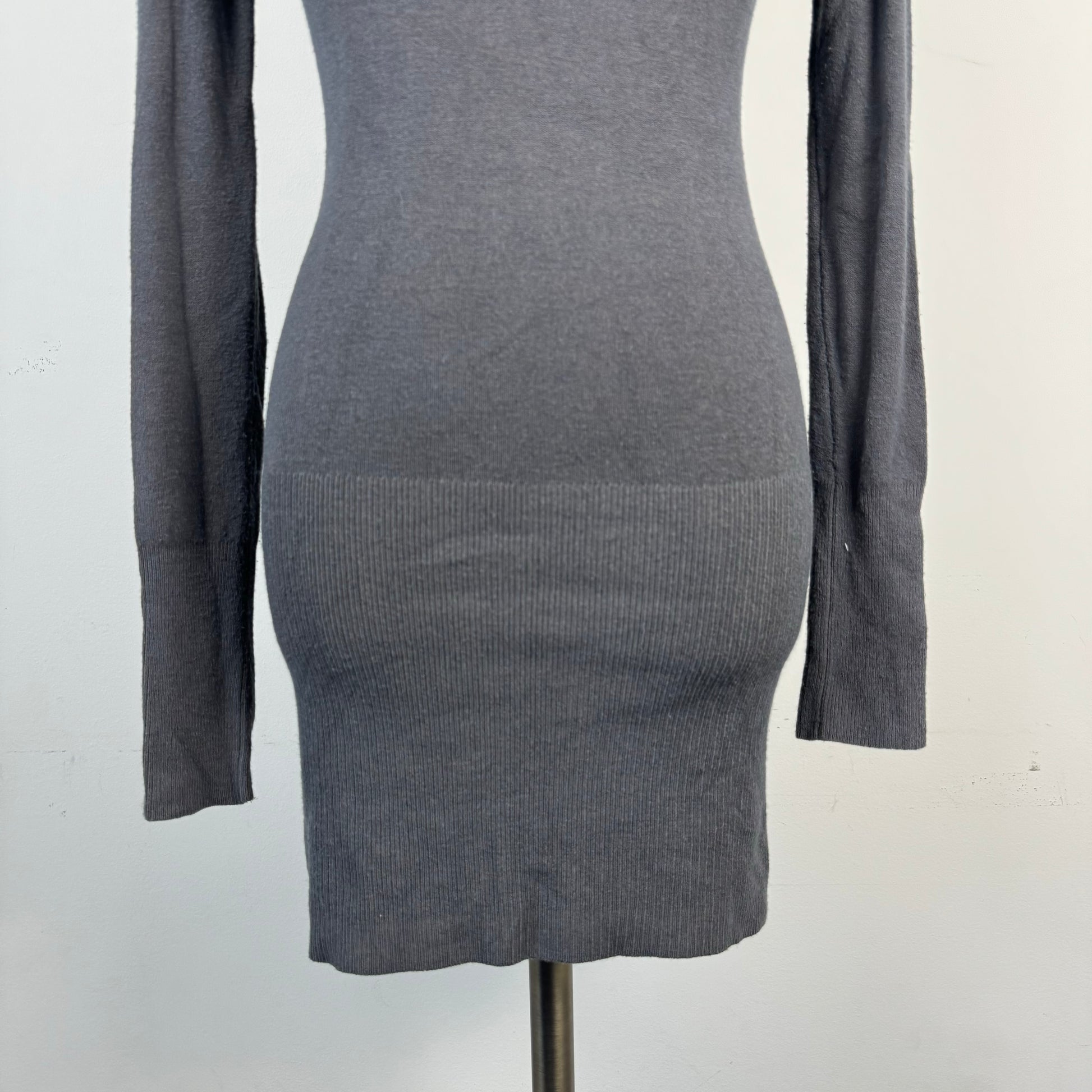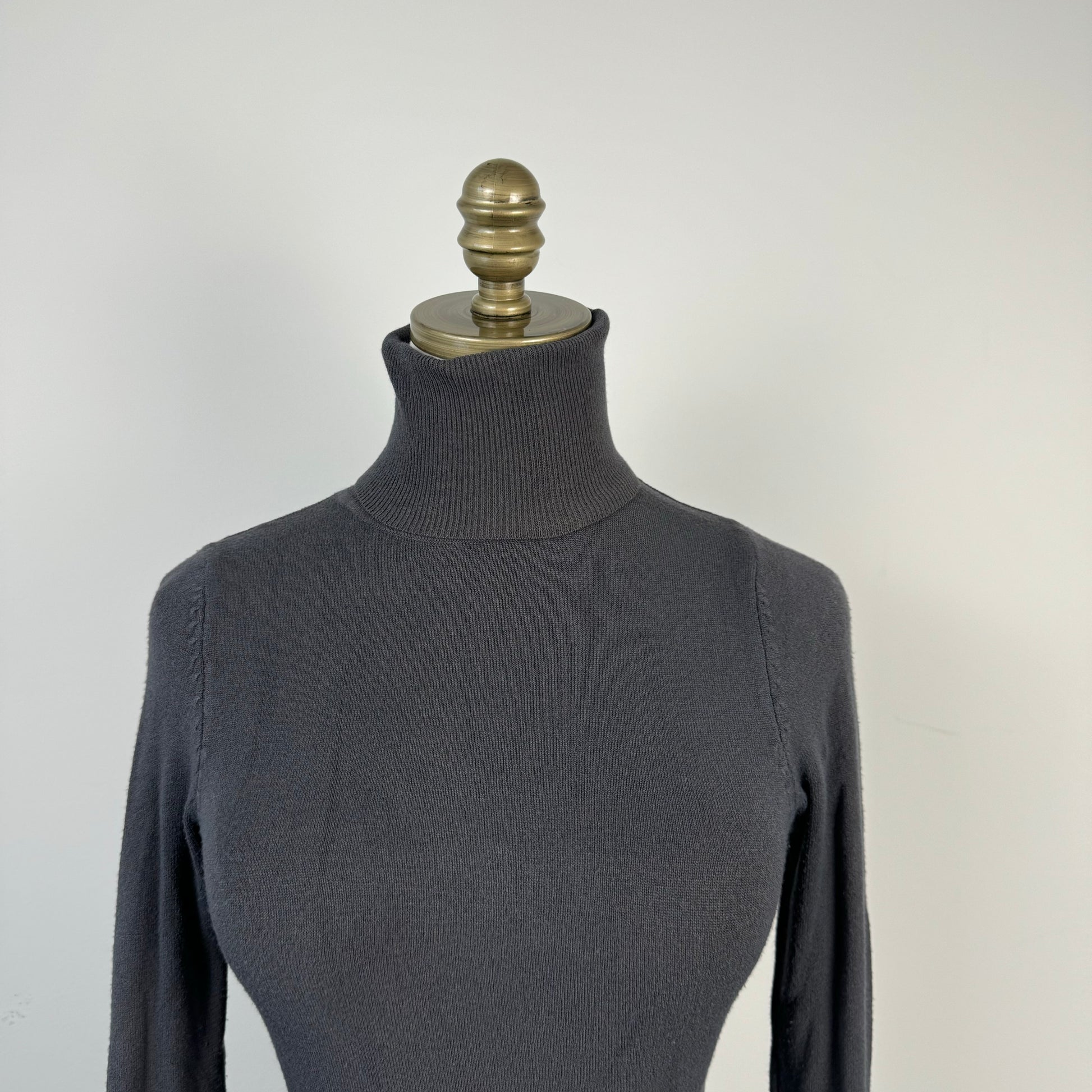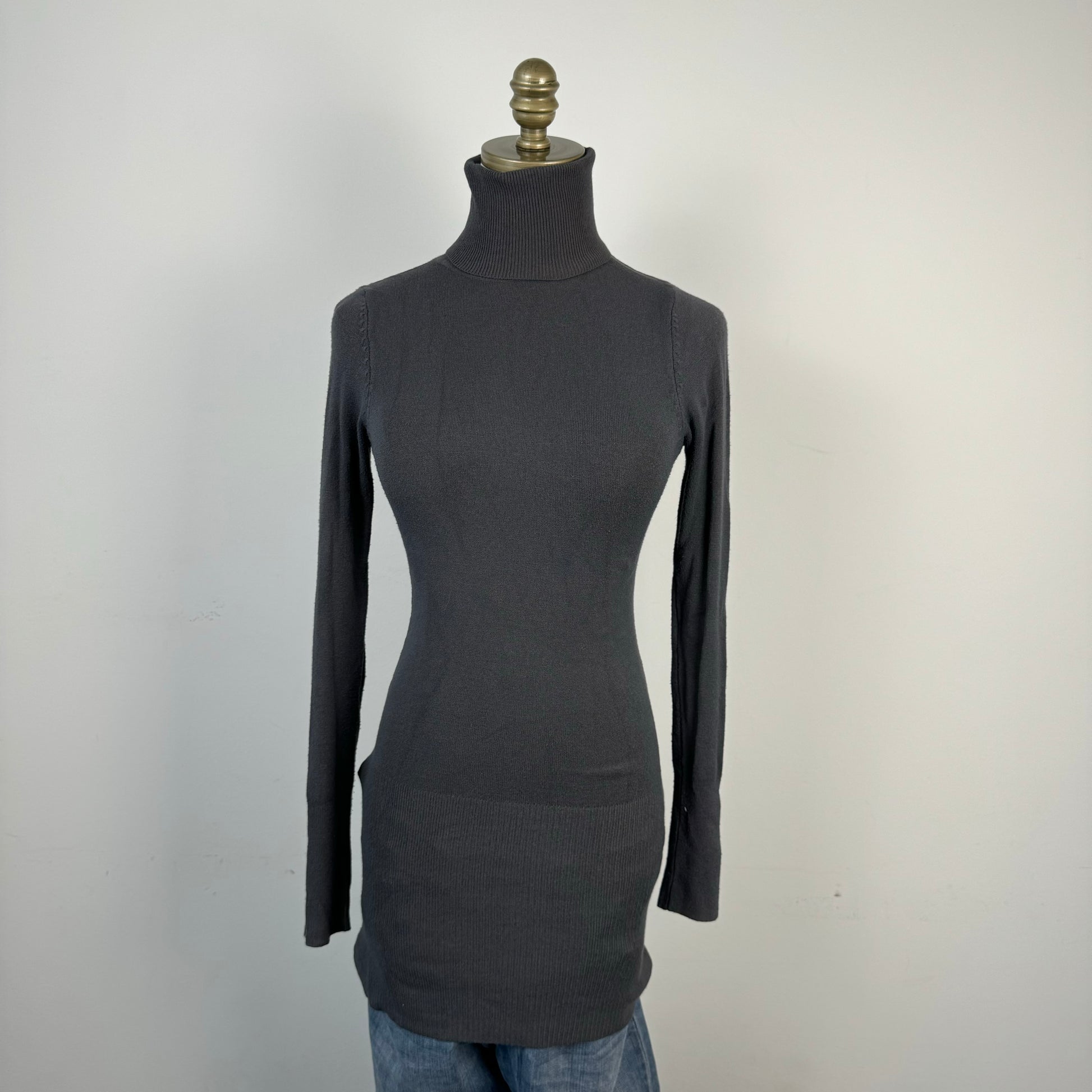 Details: Vintage fitted turtleneck sweater in grey, can be styled as a mini dress.