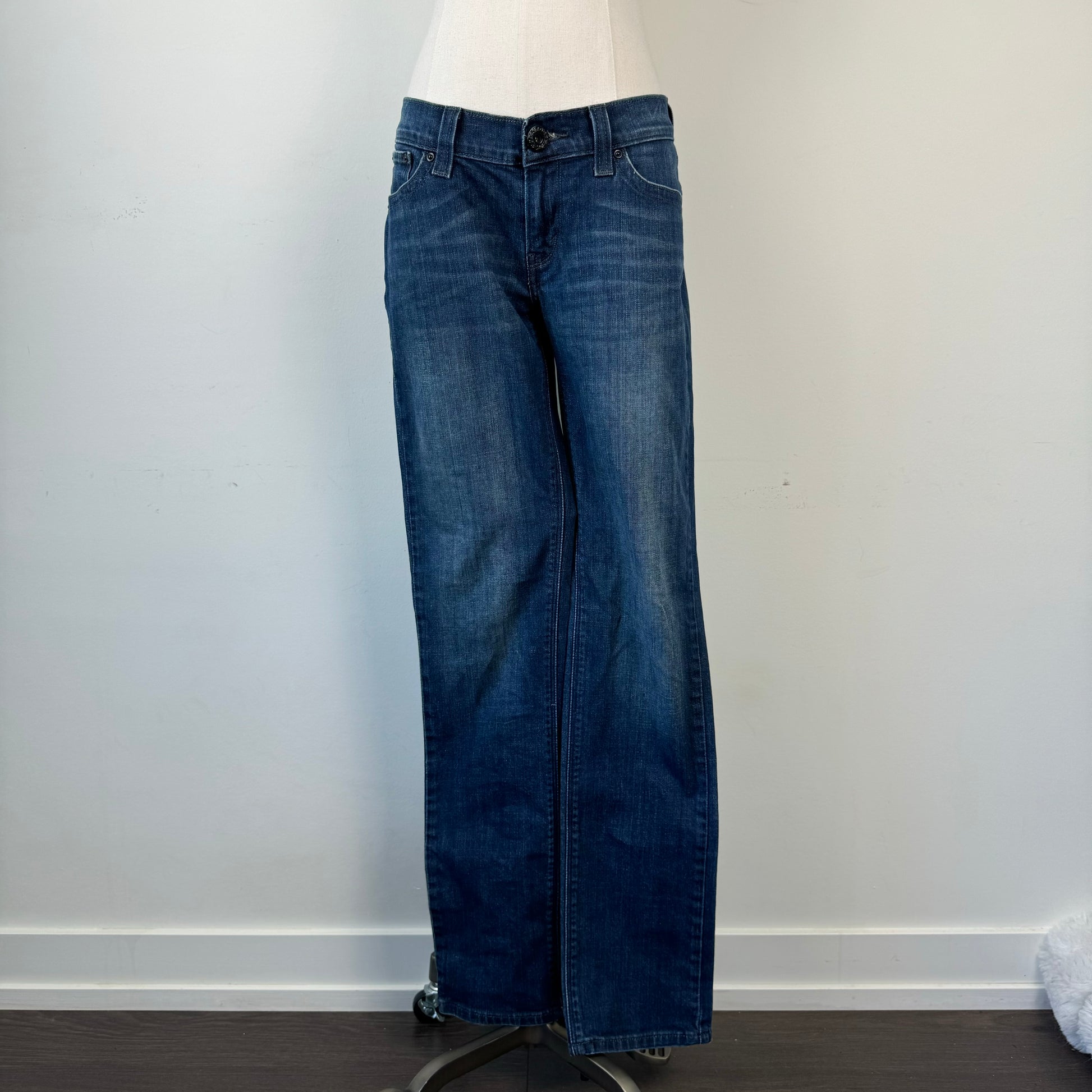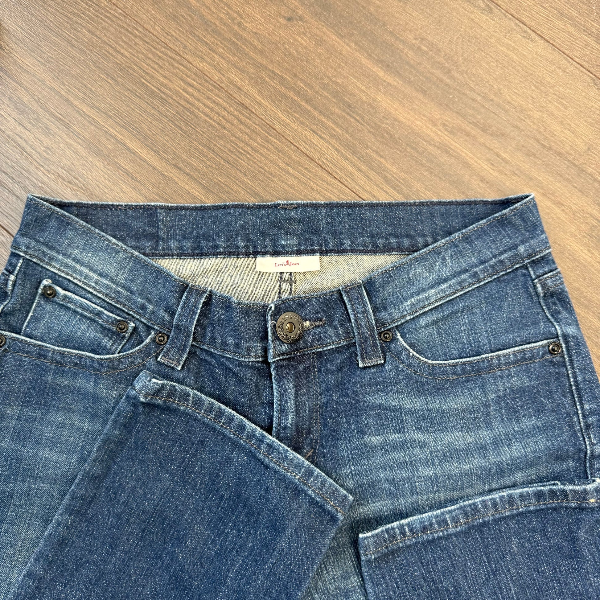 Details: Vintage Levi's low rise straight cut jeans in a medium wash.