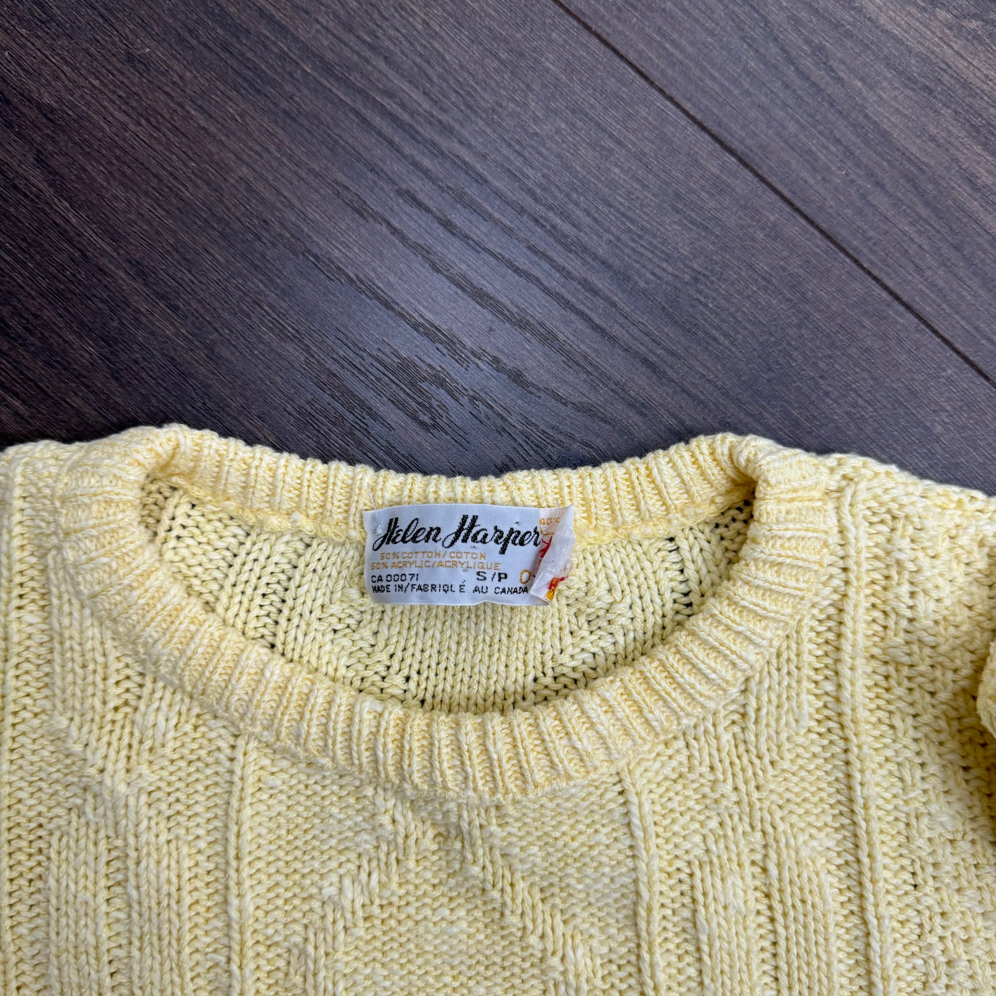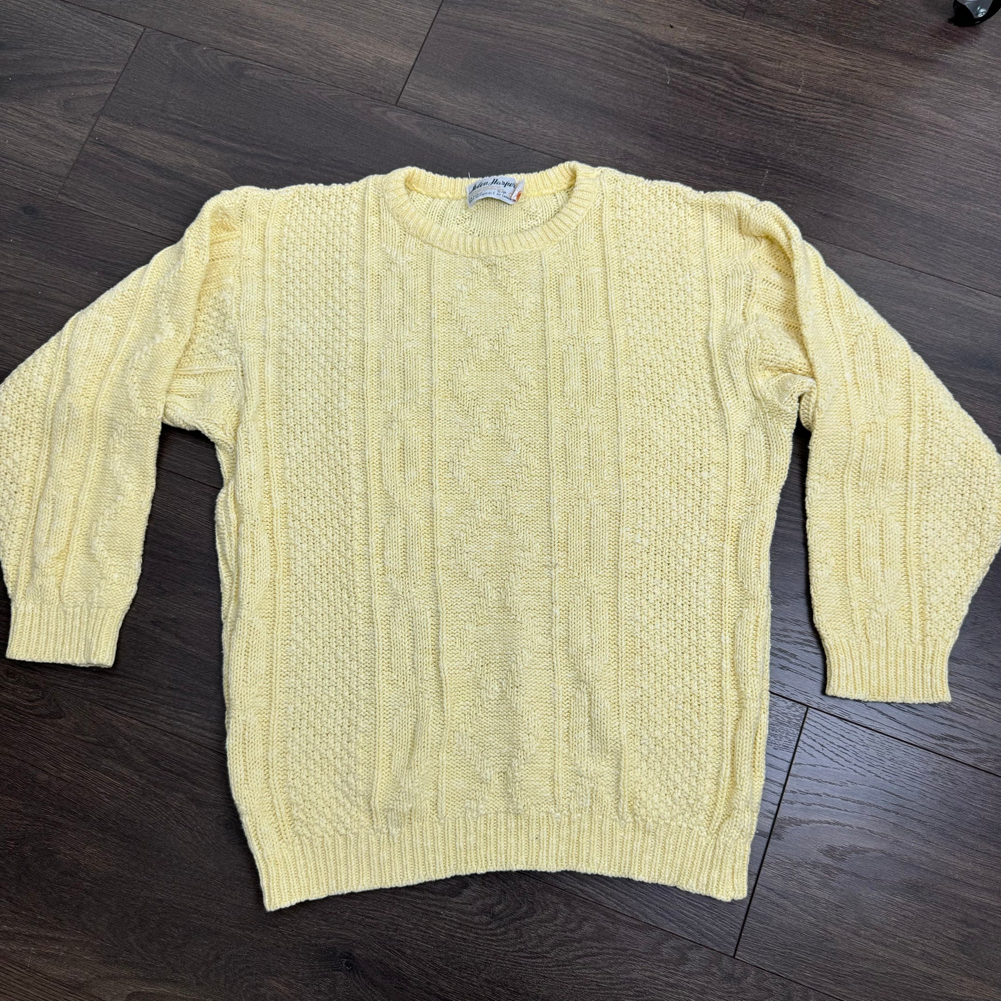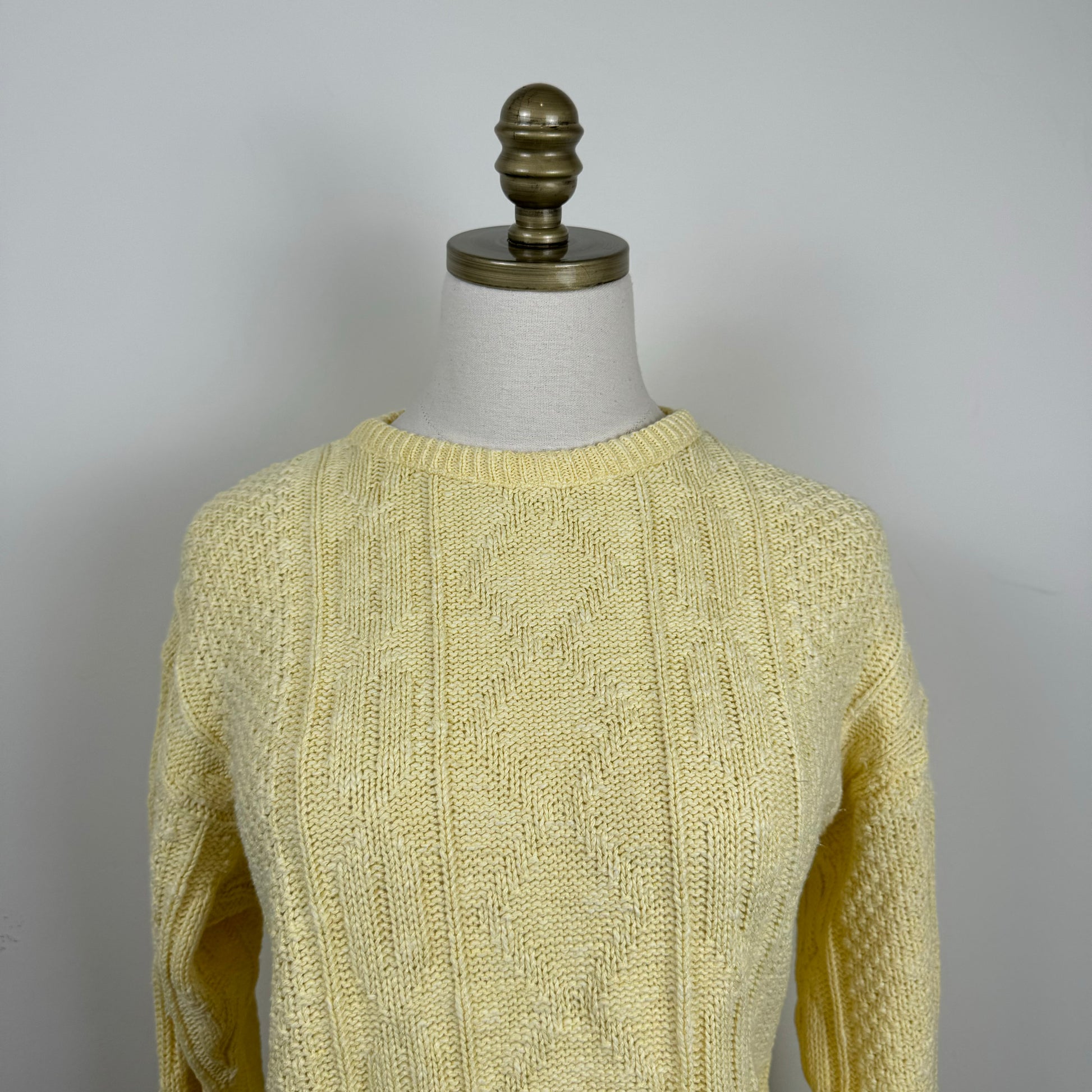Details: Vintage butter yellow cable knit crewneck sweater.