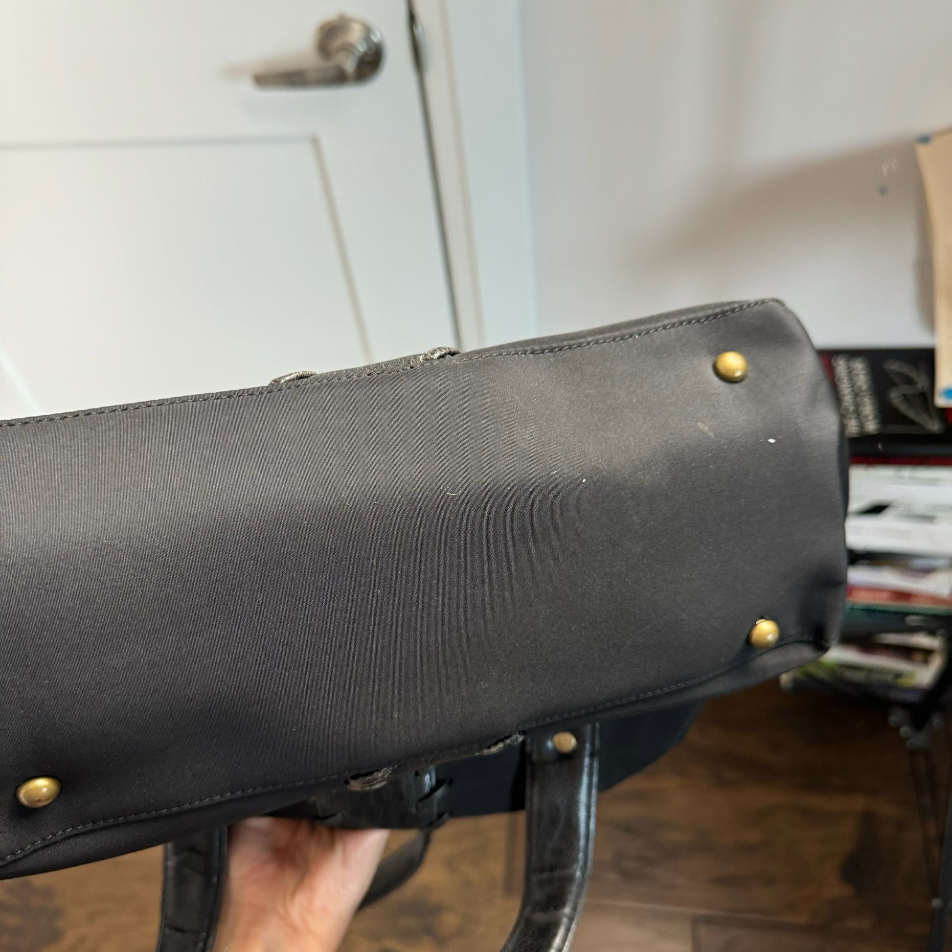 Details: Vintage black western shoulder bag with gold studded and leather details.